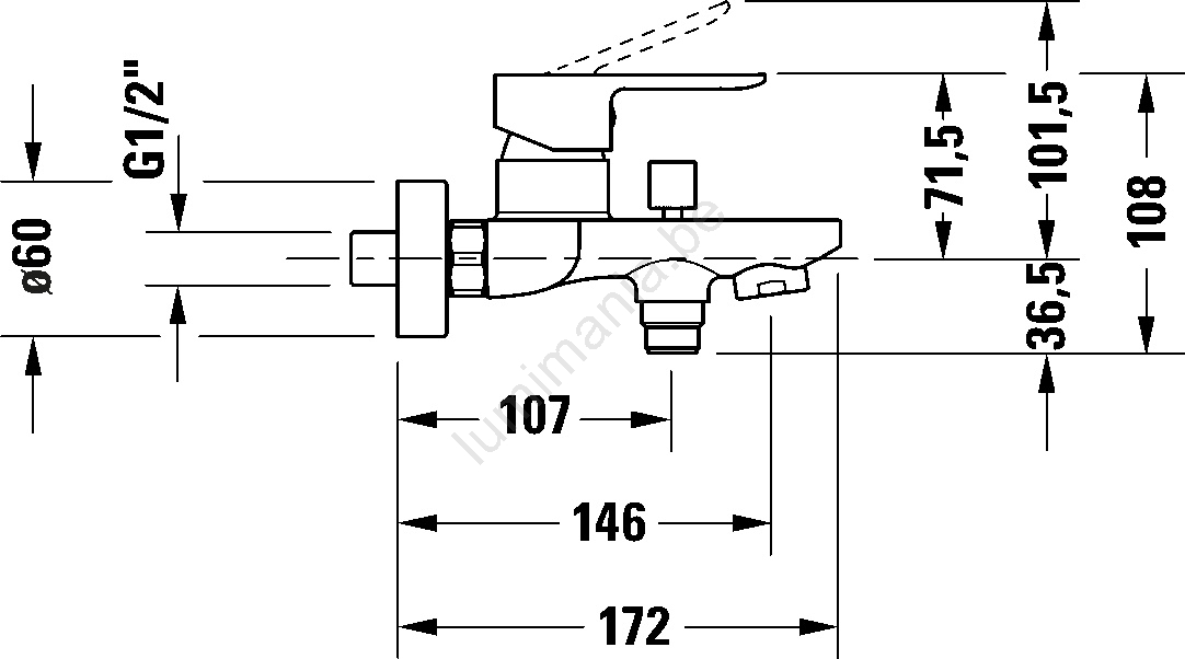 • De wandgemonteerde eengreeps badkraan is geschikt voor wandmontage.