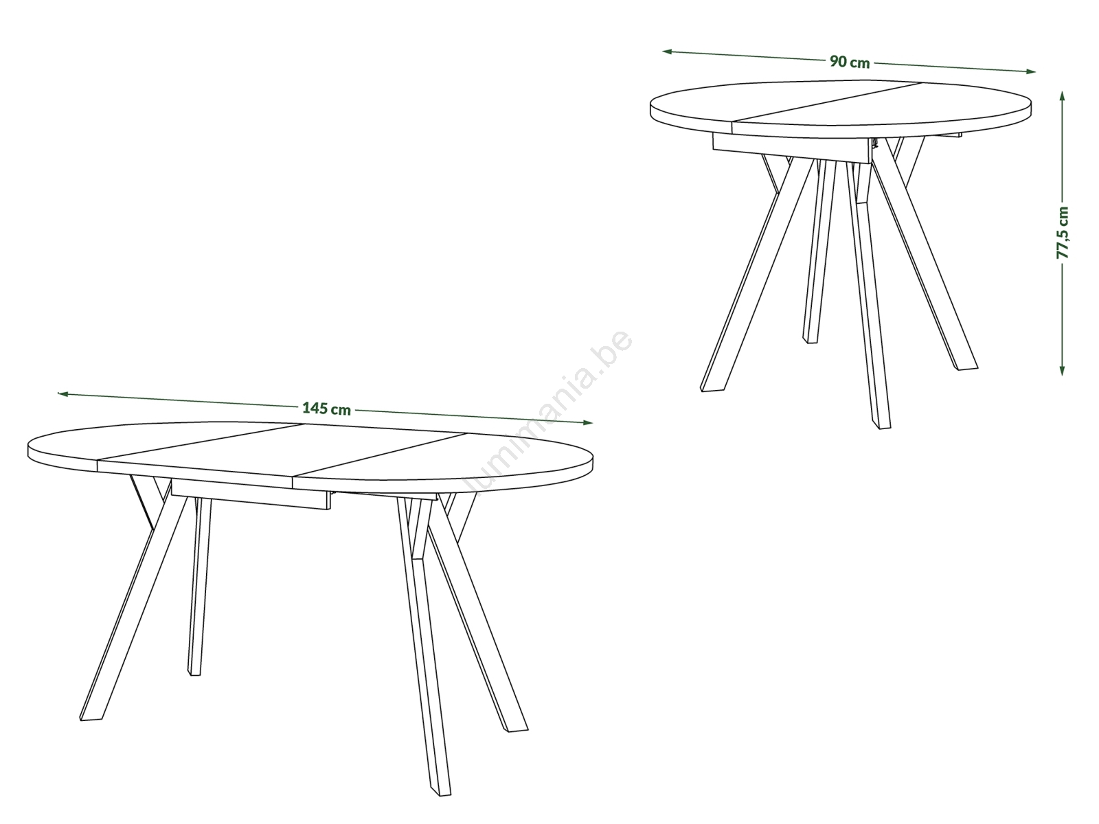• Afmetingen uitgeklapte tafel: 145 x 90 cm.