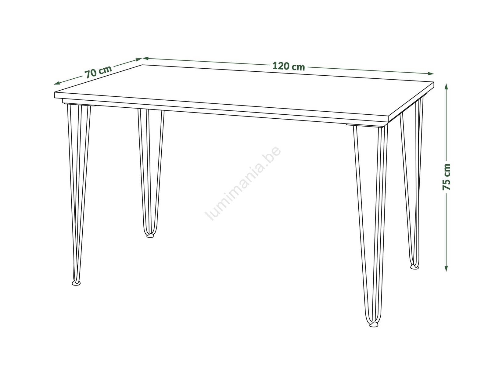 • Het tafelblad met afmetingen 120x70 cm biedt voldoende ruimte voor comfortabel dineren of werken.