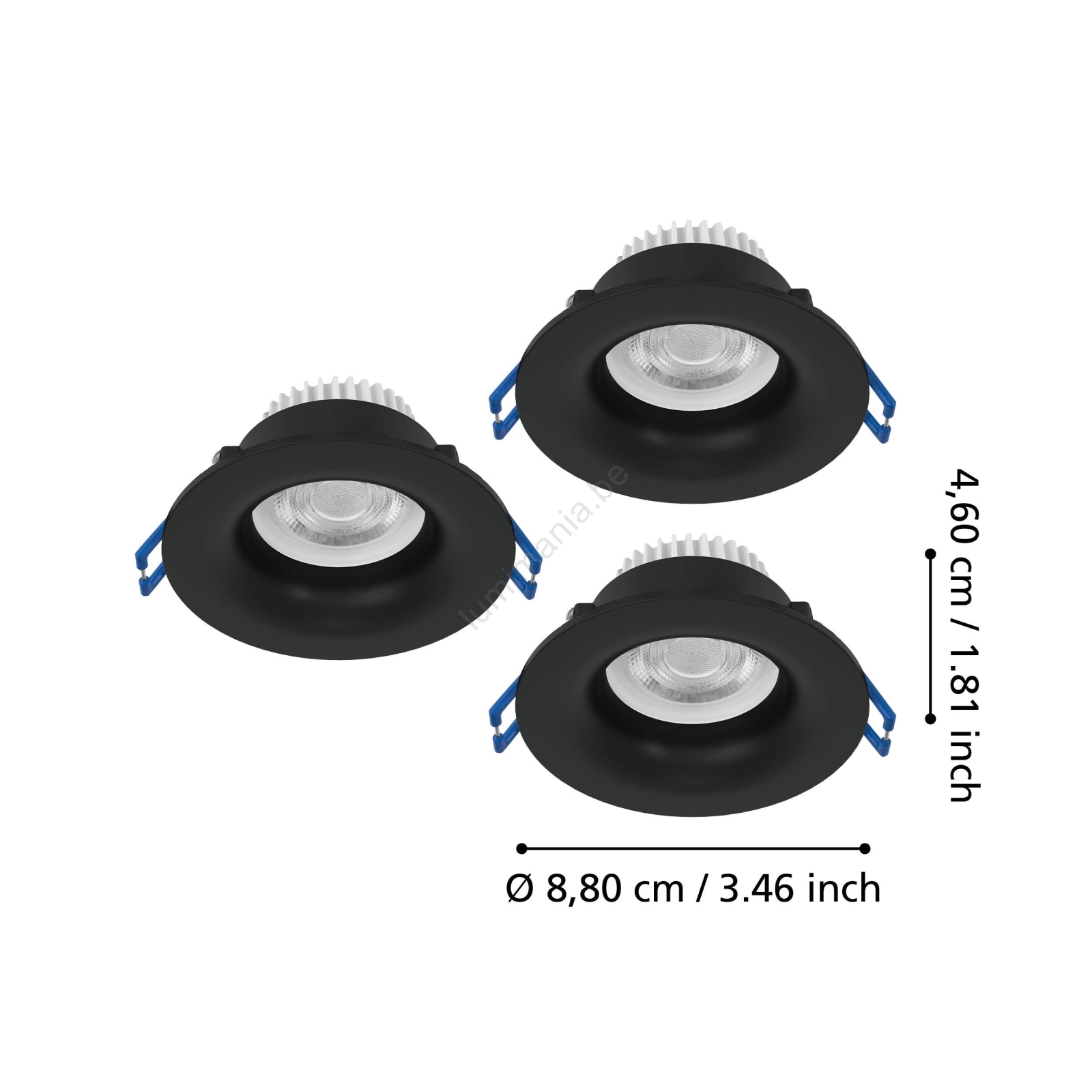 • Eglo - Set van 3 LED-inbouwspots voor badkamer, 4,9W, 230V, 2700/4000/6500K, Ø 8,8 cm, IP65, zwart
