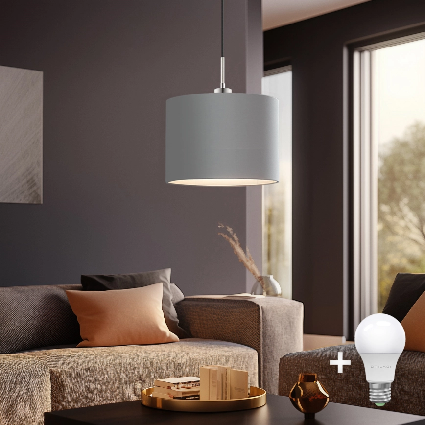 Eglo - LED Hanglamp aan kabel TUNJA 1xE27/60W/230V grijs kenmerkt een mooi en functioneel ontwerp.  Voor het licht is een lamp met E27 fitting geschikt. Hier kunt u andere lampen tegen voordelige prijzen kopen. U heeft een interessante aanwinst voor uw woning.