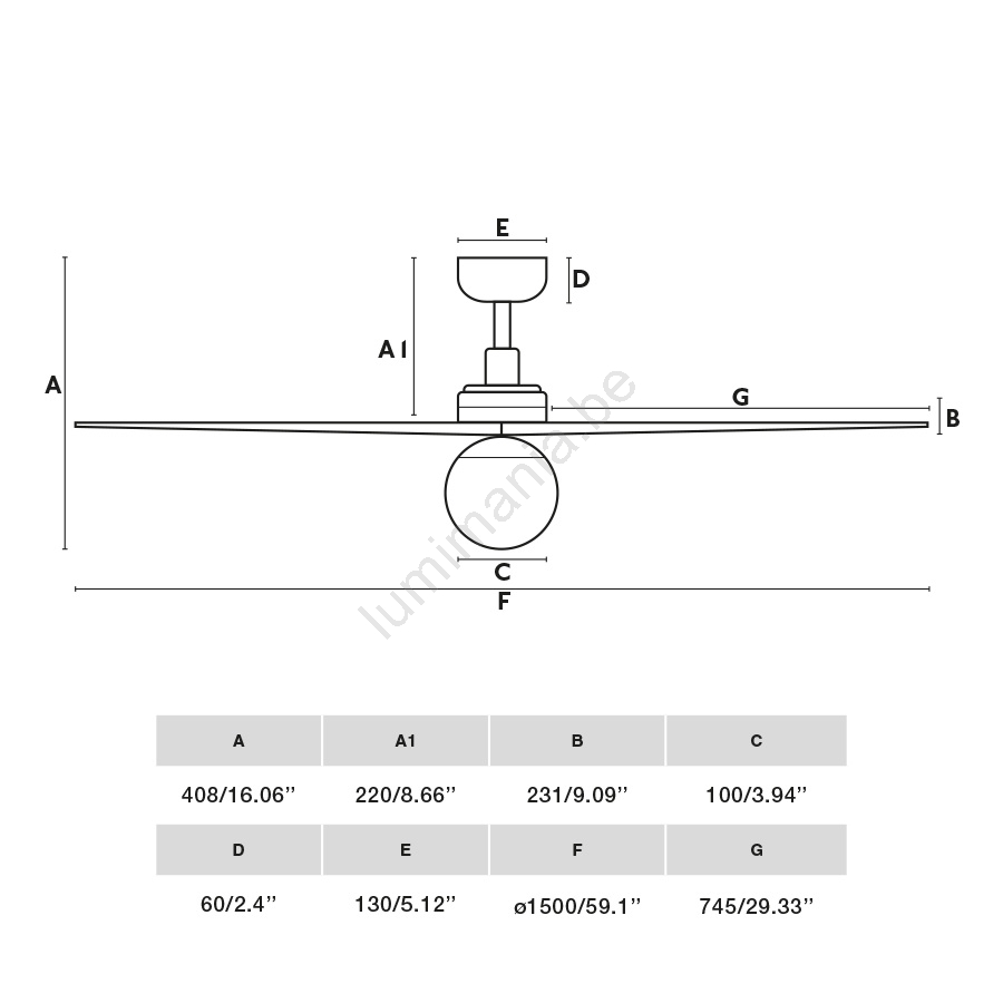 • De DC-motor heeft 6 instelbare snelheden met een verbruik van 5-7-11-17-24-35W en 67-88-106-122-140-159 omw/min, afhankelijk van de snelheid.
