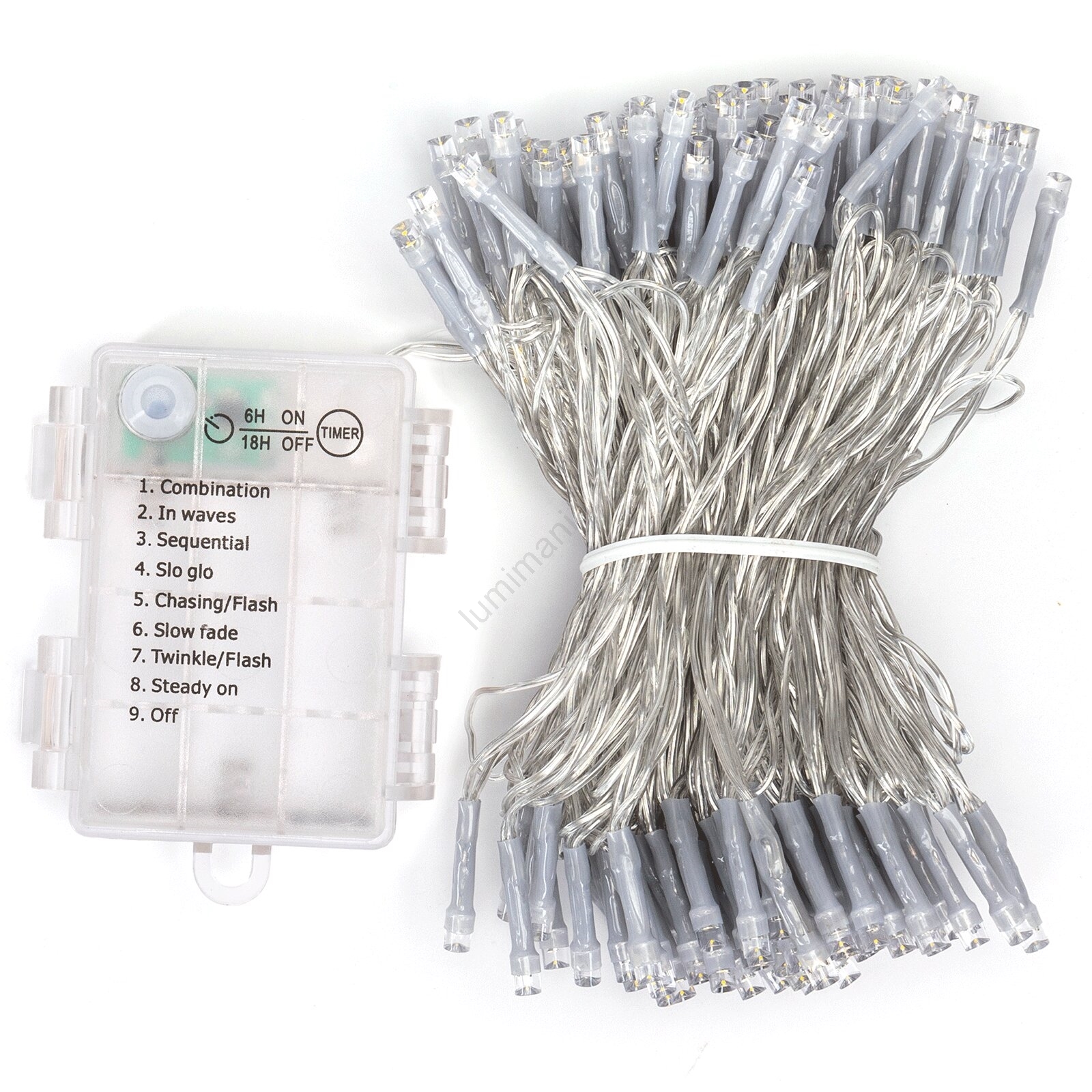 Aigostar -Guirlande de Noël extérieure 150xLED/8 fonctions 3xAA 15,3m IP44 blanc chaud
