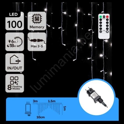 Aigostar - Guirlande de Noël LED d'extérieur 100xLED/6W/230V/8 fonctions 1,5x1m IP44 blanc froid + télécommande