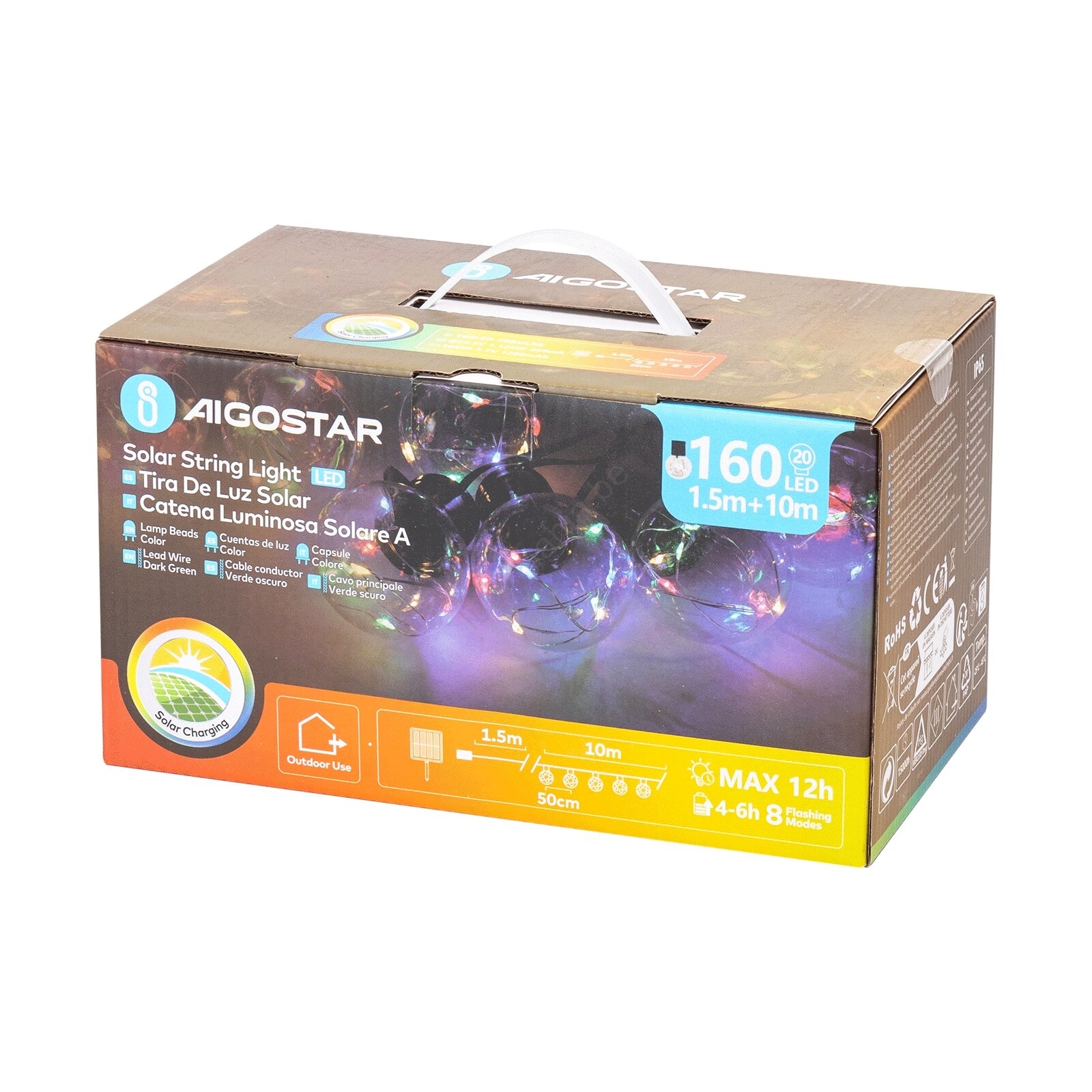 Aigostar - Guirlande de Noël solaire 20xLED/8 fonctions 11,5m IP65 multicolore