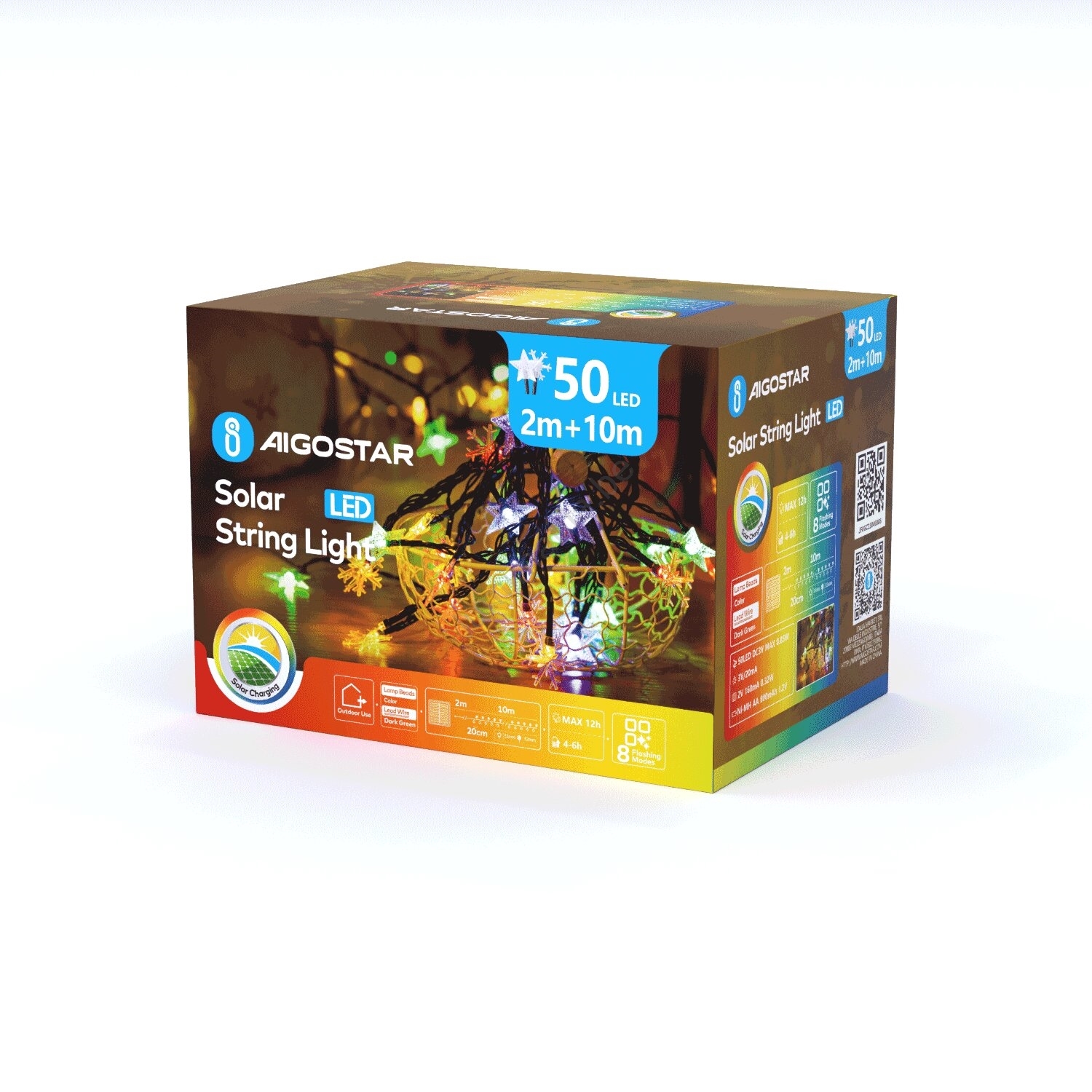 • Aigostar - Guirlande solaire de Noël 50xLED/8 fonctions 800 mAh 12m IP65 multicolore