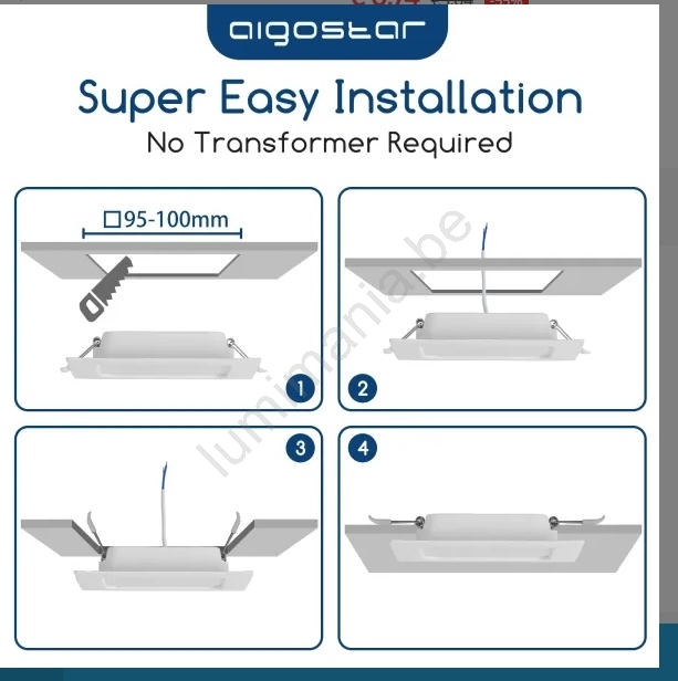 • Aigostar - Plafonnier LED encastré 6 W, 230 V, 3000 K, 12 x 12 cm, blanc