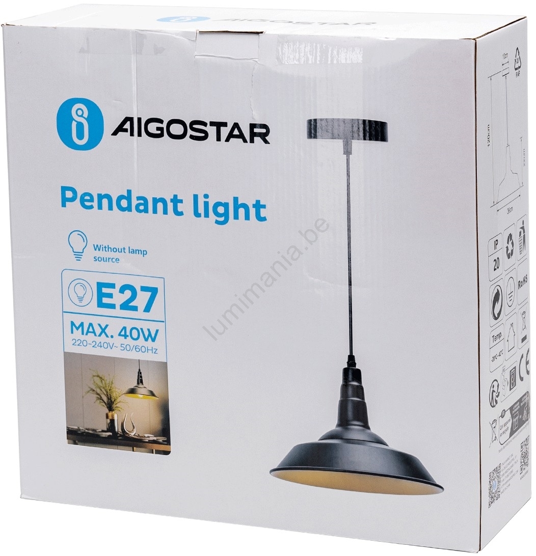 Aigostar - Suspension filaire 1xE27/60W/230V noir