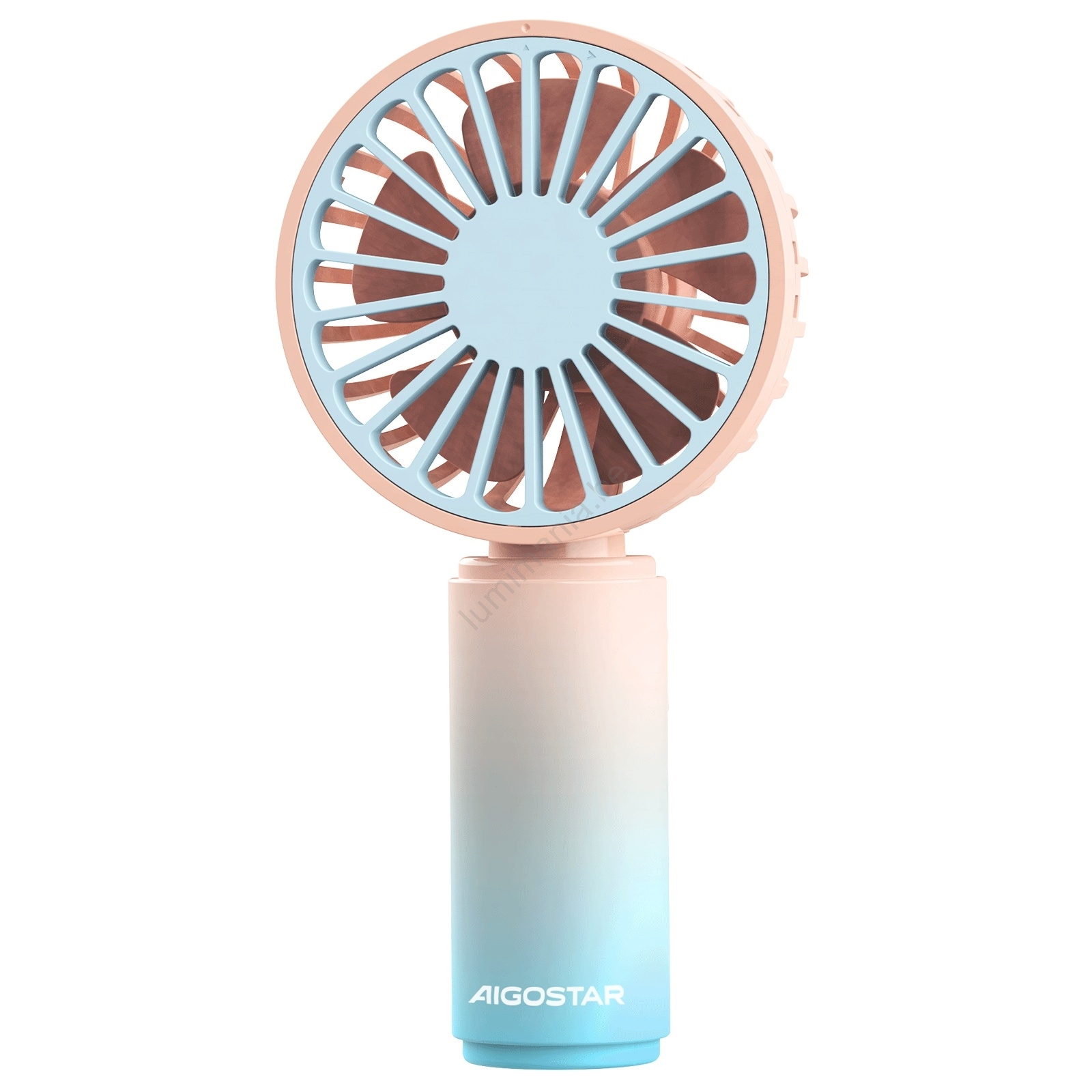 Aigostar - Ventilateur de poche rechargeable 3 W / 5 V, batterie 500 mAh, USB, rose/bleu