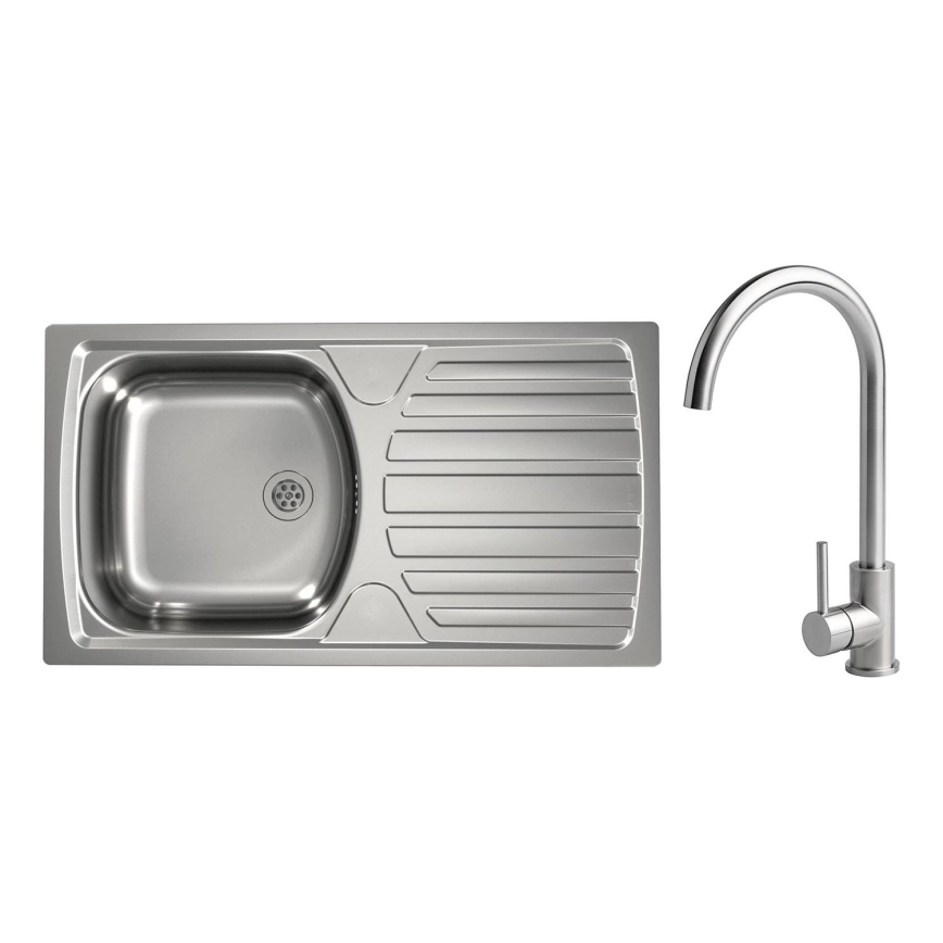 • Évier de cuisine en acier inoxydable au design classique, livré avec un mitigeur pratique.