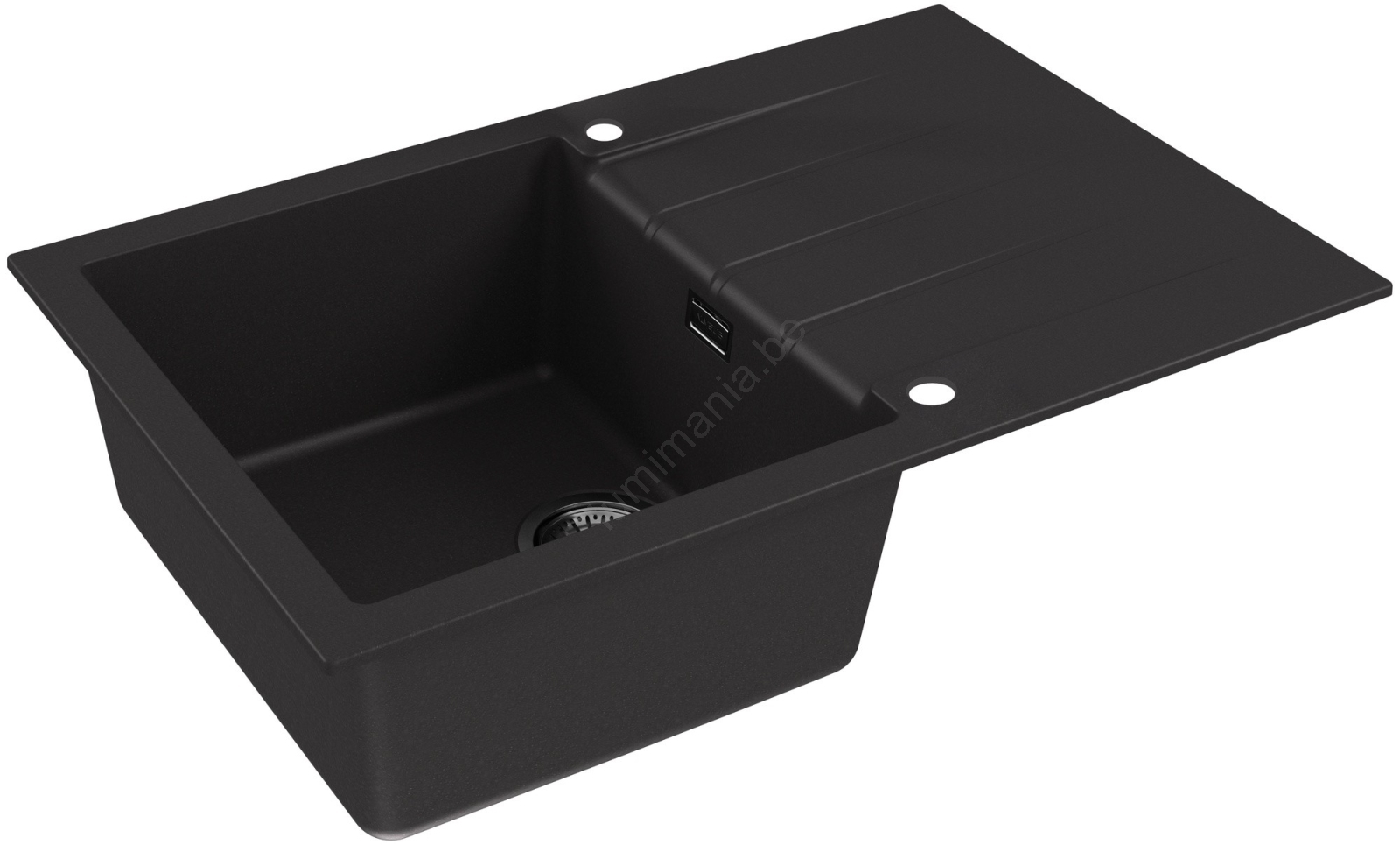 • ALVEUS SETA23201 - évier de cuisine ROCK 78x48 cm + mitigeur à bec flexible MINTAS 34 cm granit/noir mat