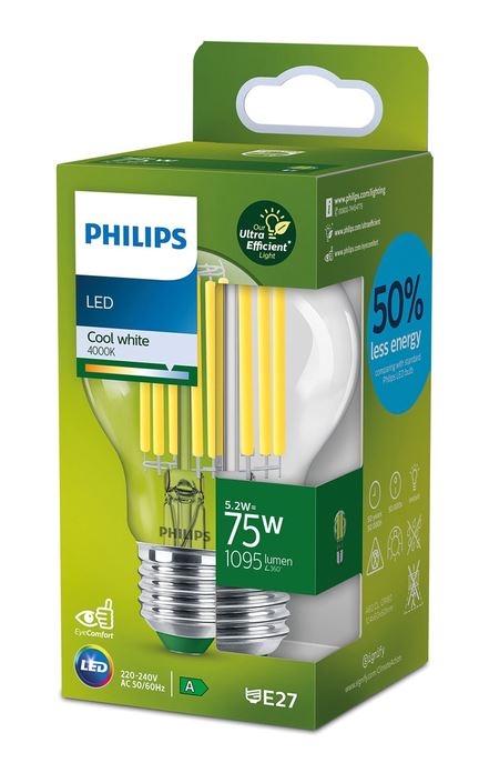 • Ampoule LED ULTRAEFFICIENT FILAMENT Philips A60 E27/7,3W/230V 4000K