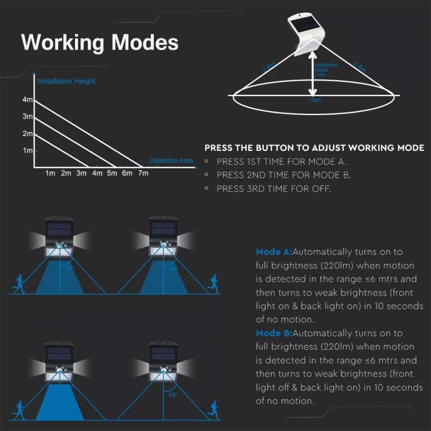 • Applique murale solaire avec détecteur LED/1.5W/3,7V IP65 1200 mAh