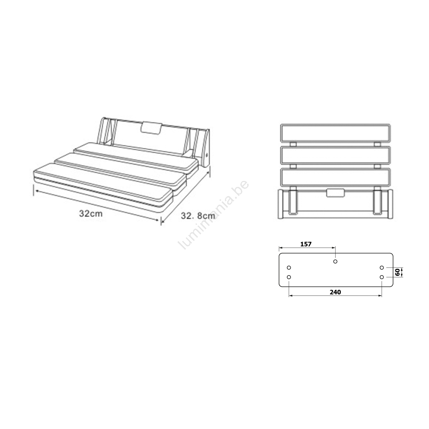Aqualine - Siège de douche rabattable 32x32,8 cm blanc