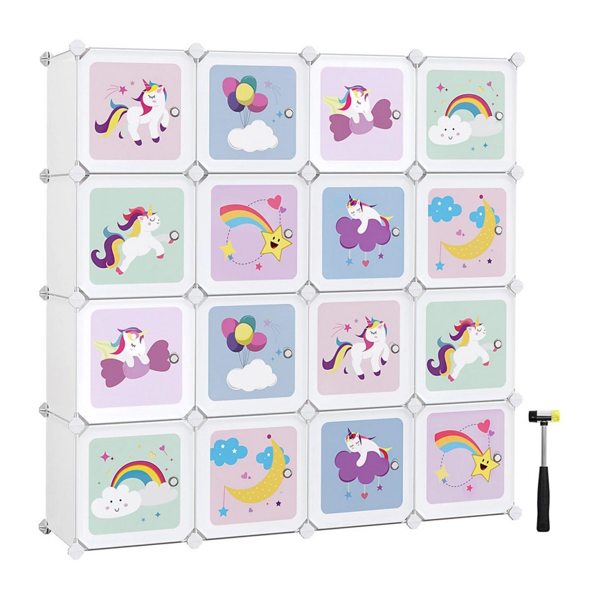 • Blocs de rangement pour enfants avec motifs arc-en-ciel, licornes, étoiles et ballons ANET