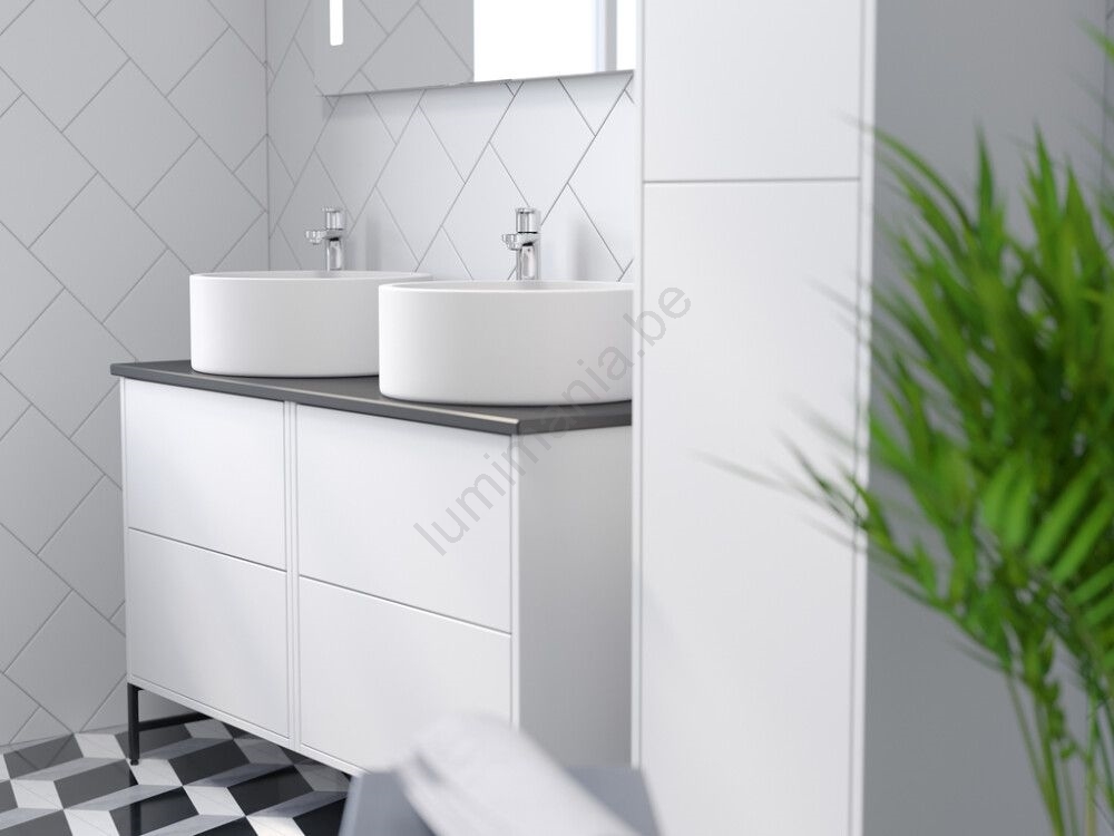• Le lavabo est destiné à être posé sur un plan de toilette, ce qui permet un positionnement flexible et une association avec différents types de plans de salle de bains.