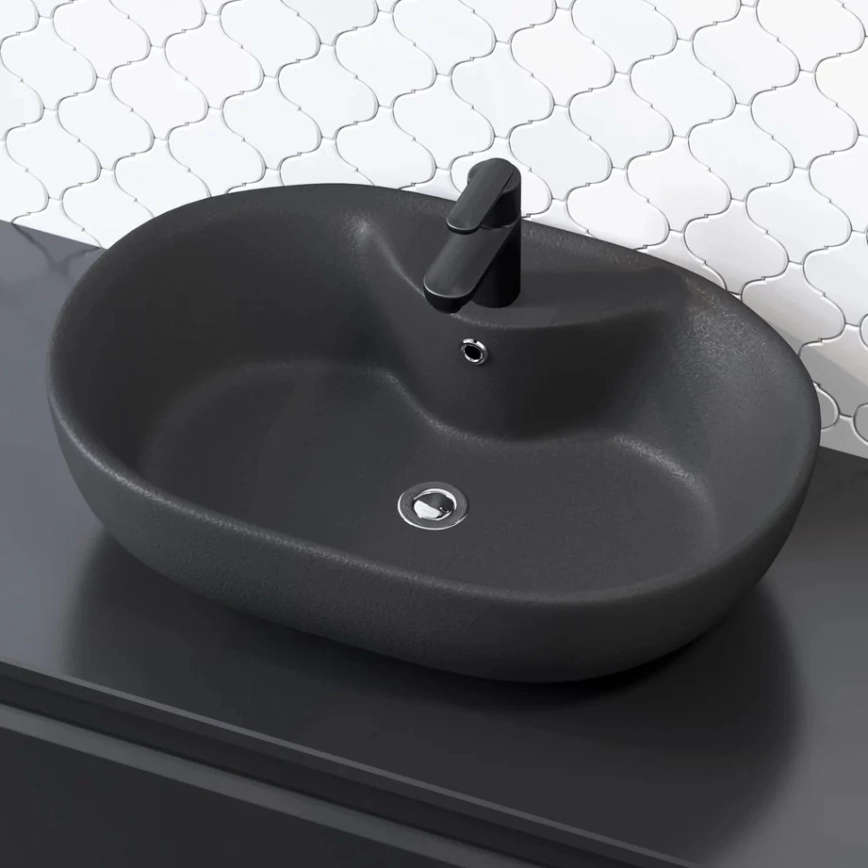 BATH DELUXE 06-060-08-02-00 - Vasque à poser TROMSO 59,5 x 41 cm, céramique, noir mat