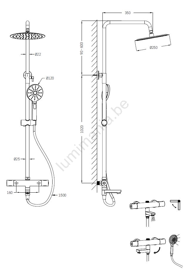• Le set comprend un mitigeur thermostatique en laiton massif.
