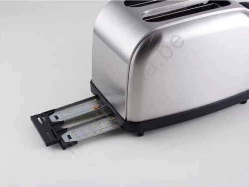 • Pour un entretien facile, le grille-pain est doté d'un tiroir ramasse-miettes coulissant pratique, et sa stabilité sur le plan de travail est assurée par des patins antidérapants.
