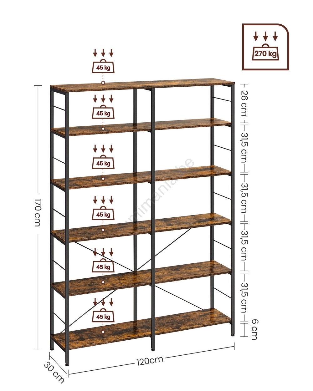 • Grâce à 6 étagères (charge maximale jusqu'à 270 kg) vous pouvez y ranger des livres, des figurines, des décorations et autres objets d'exposition.