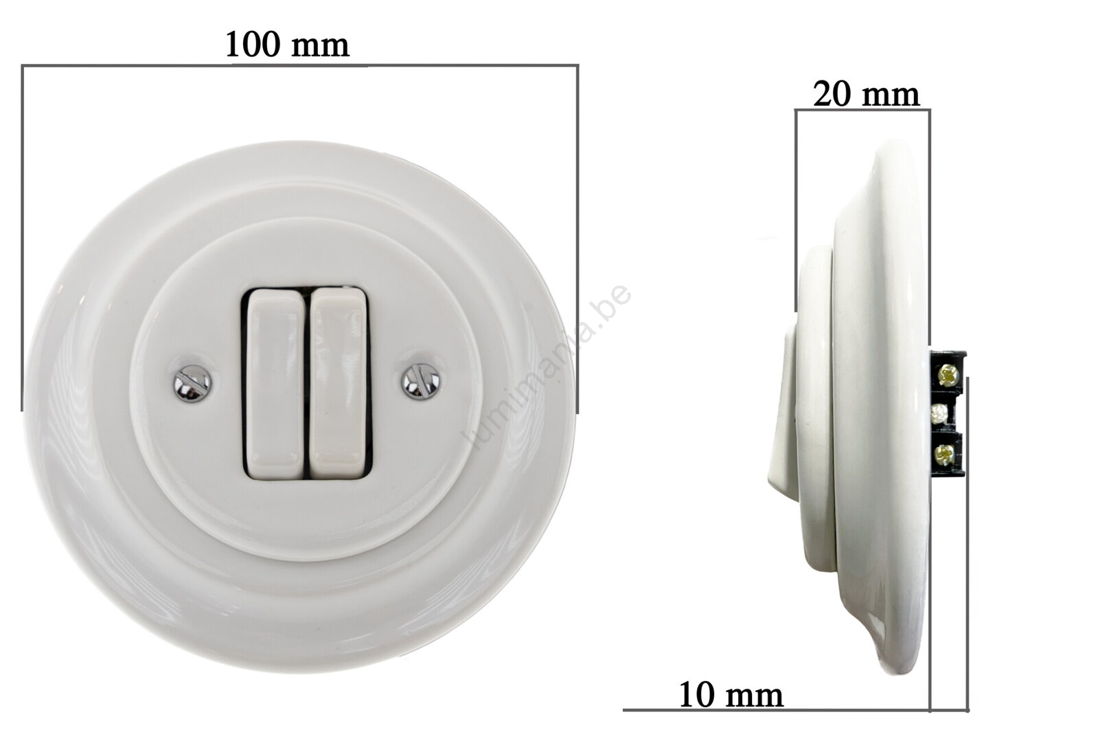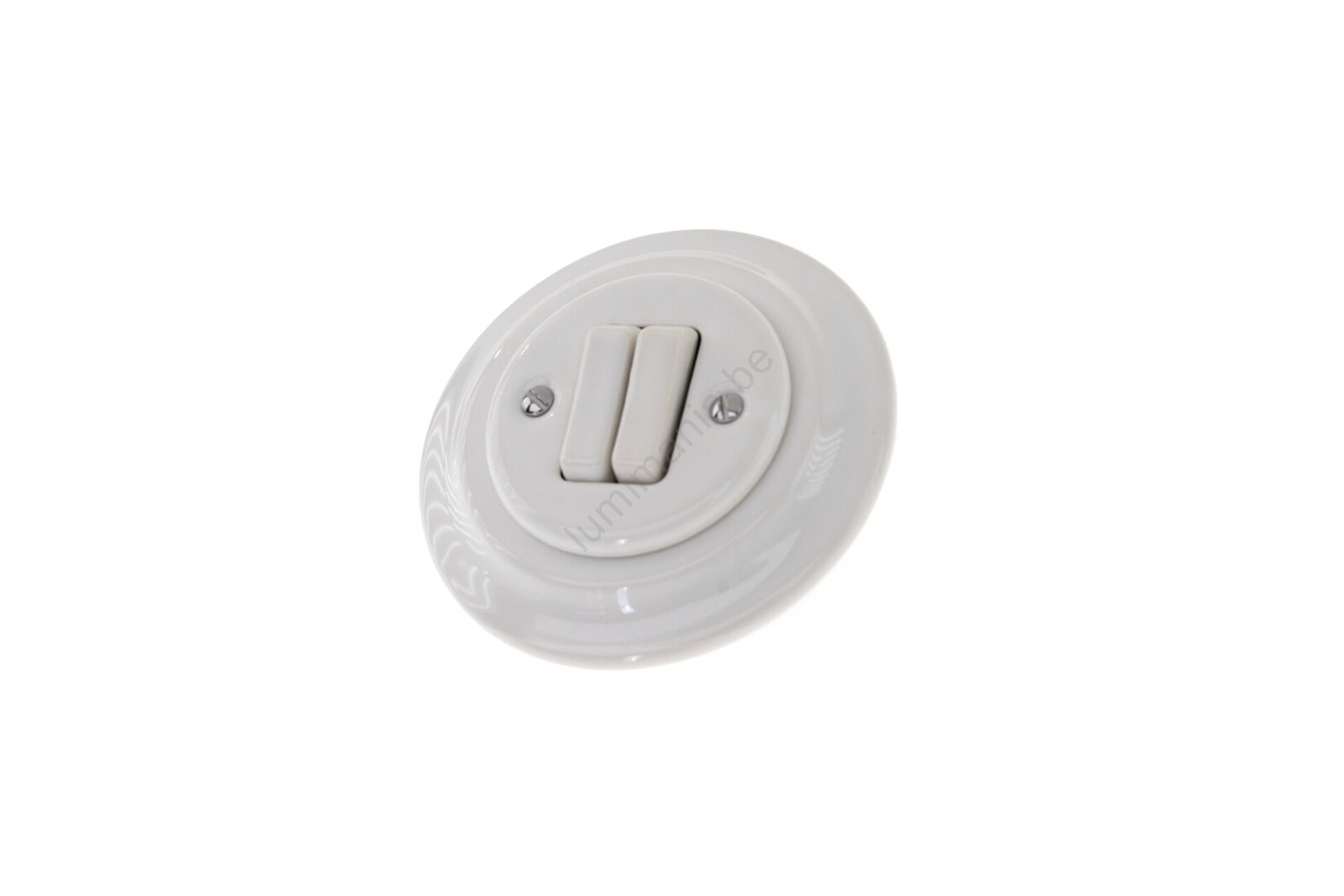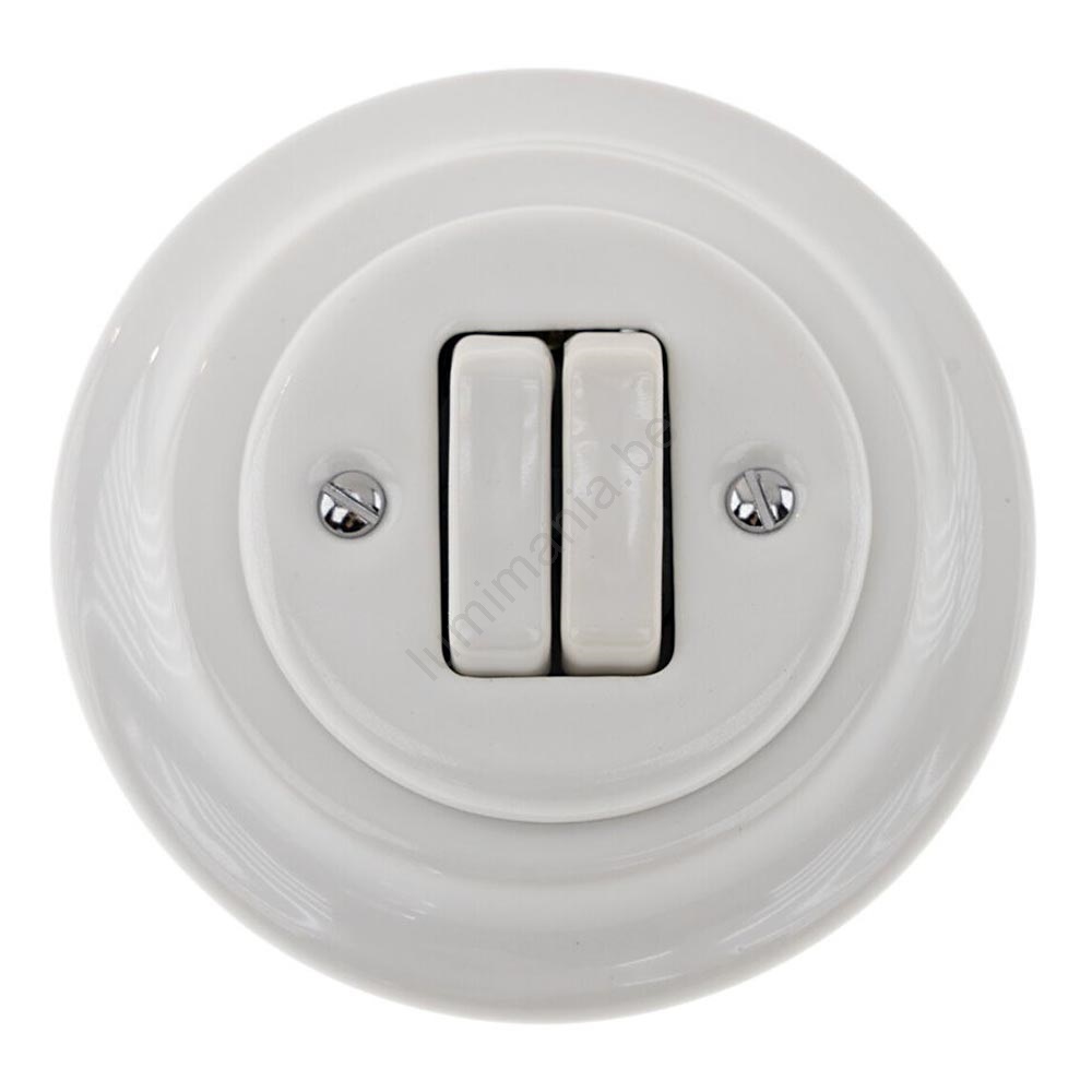 Bohemia-Design - Interrupteur double rétro en porcelaine avec cadre n°5, blanc