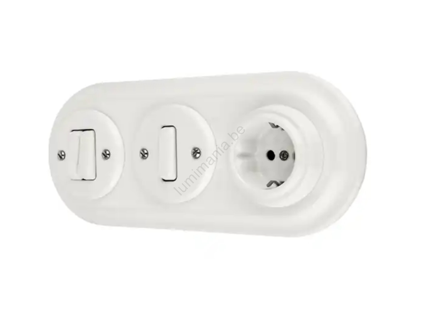 Bohemia-Design - Prise murale rétro en porcelaine, sans cadre, SCHUKO 250V/16A, blanche