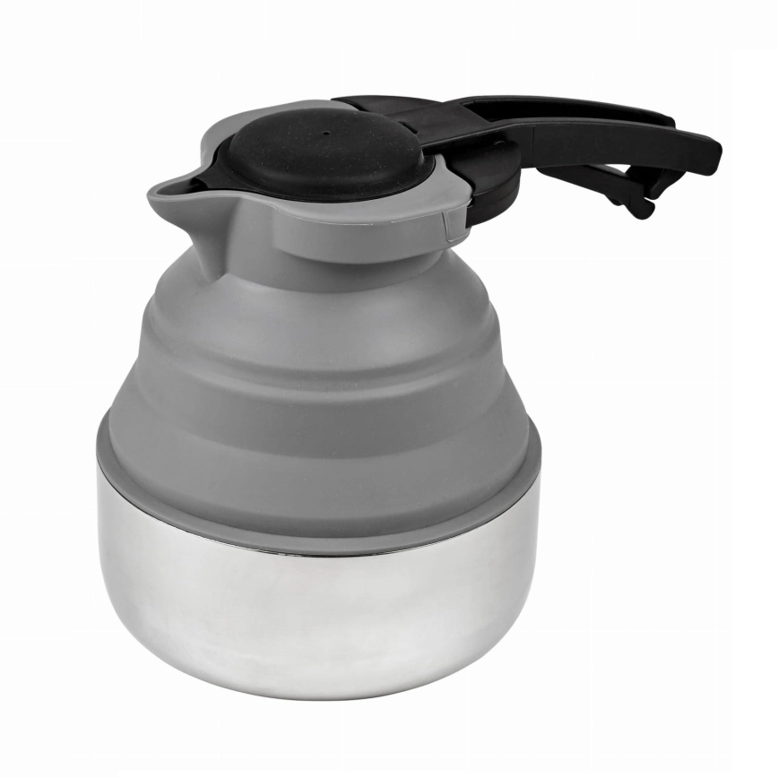 • La bouilloire pliable d'une capacité de 1,8 litre est une solution pratique pour le camping, le chalet, la caravane, la tente ou une petite cuisine — elle se replie facilement et permet de gagner de la place.