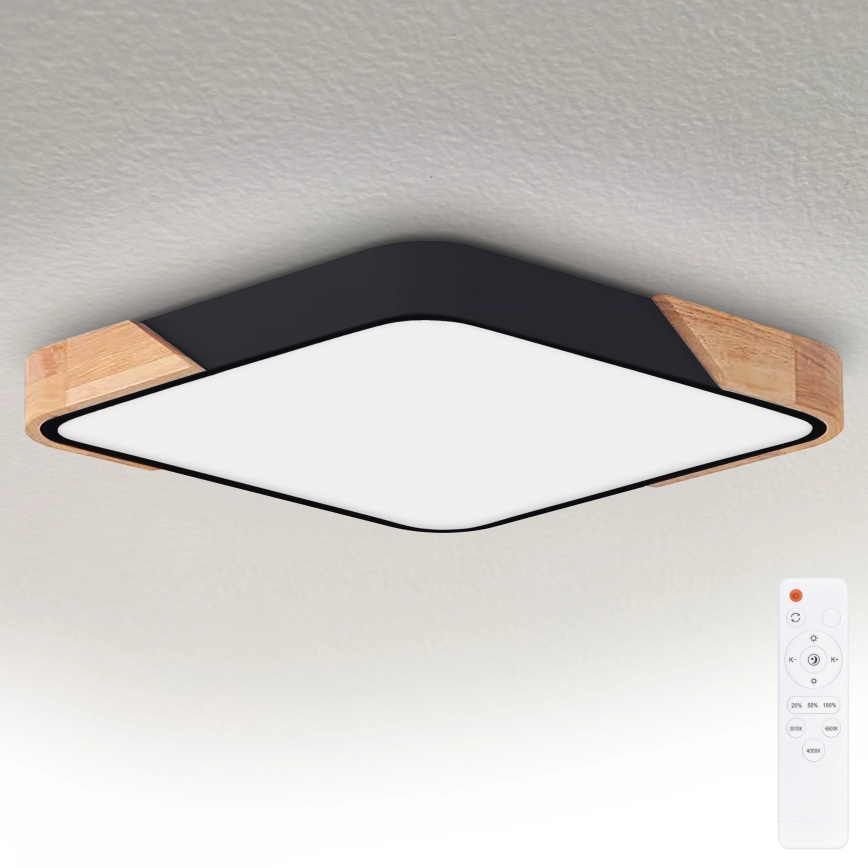 • Brilagi - Plafonnier LED dimmable PILANA LED/48W/230V 3000-6500K chêne/noir 56x56 cm + télécommande