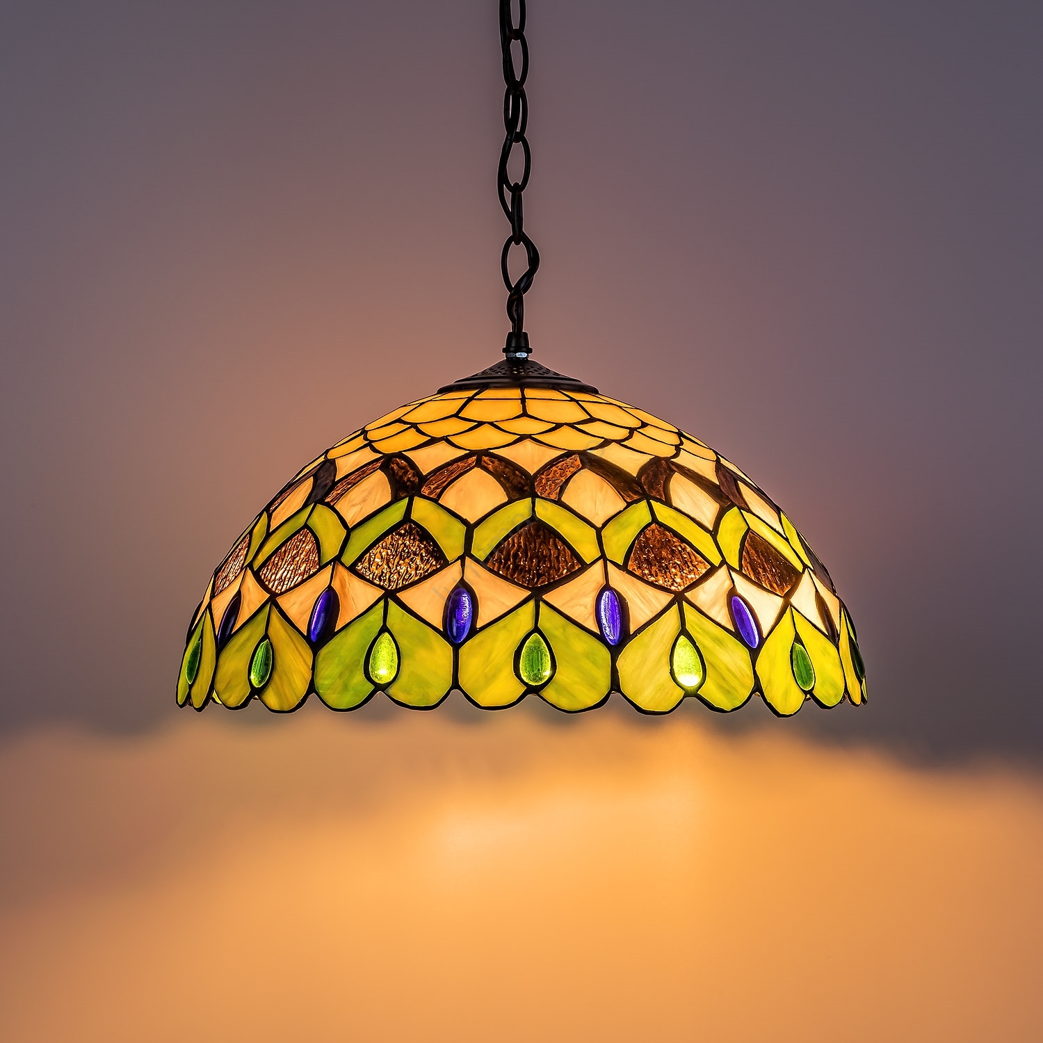 • Brilagi - Lustre Tiffany en vitrail, suspendu sur chaîne DORAN 2xE27/60W/230V