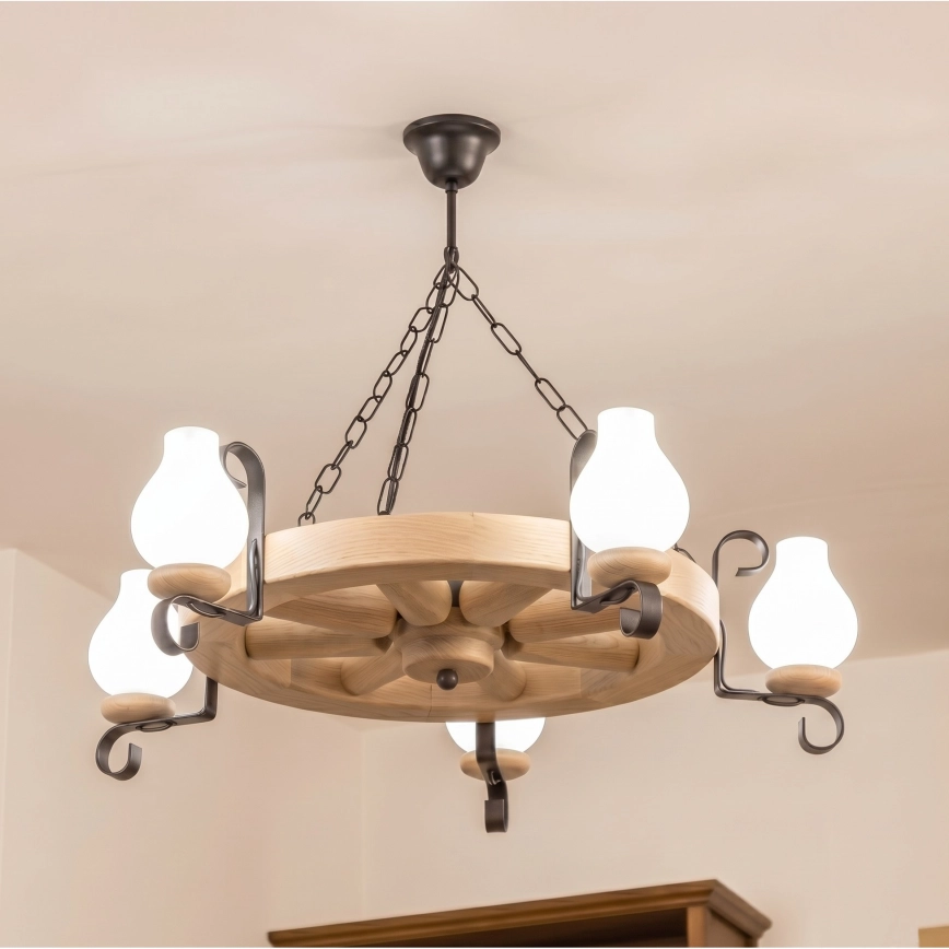 Brilagi - Lustre suspendu sur chaîne ROATA 5xE14/40W/230V chêne caractérise un design agréable et fonctionnel.  Une ampoule à culot E14 convient pour ce luminaire. Ici, vous pouvez acheter d'autres ampoules à des prix avantageux. Vous aurez un ajout intéressant dans votre intérieur.