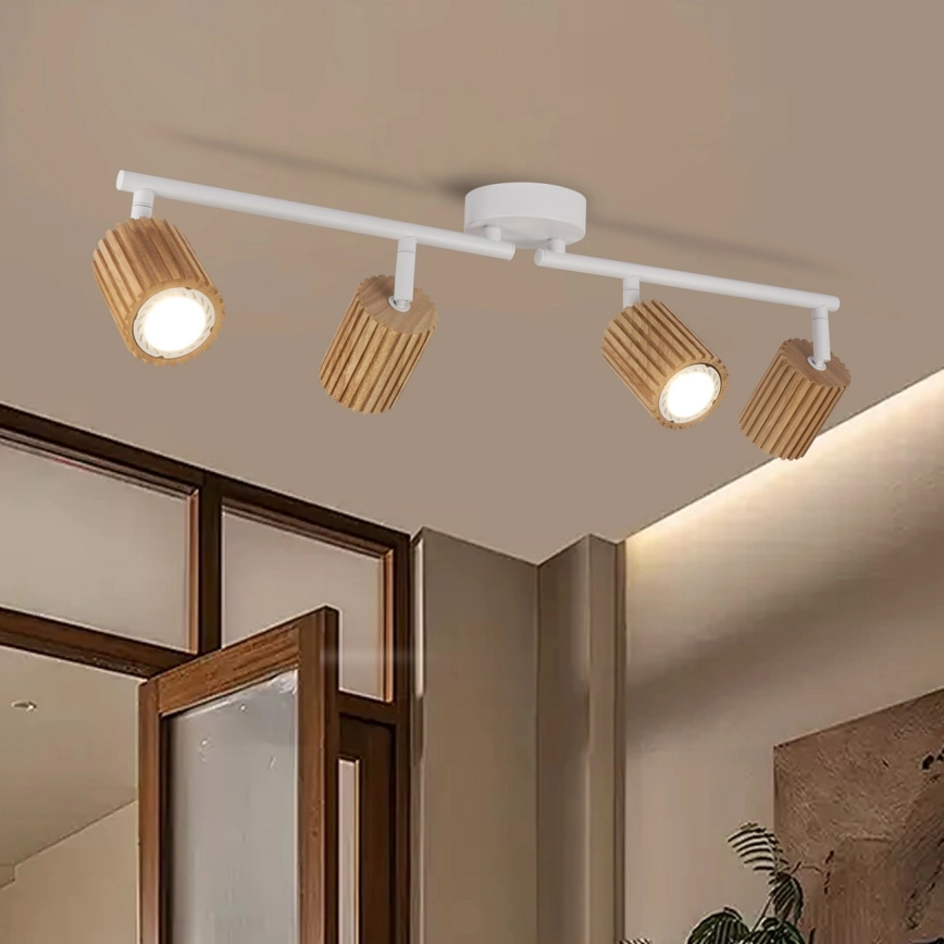 Brilagi - Plafonnier à spots MODERN WOOD 4xGU10/8W/230V bois d'hévéa/blanc
