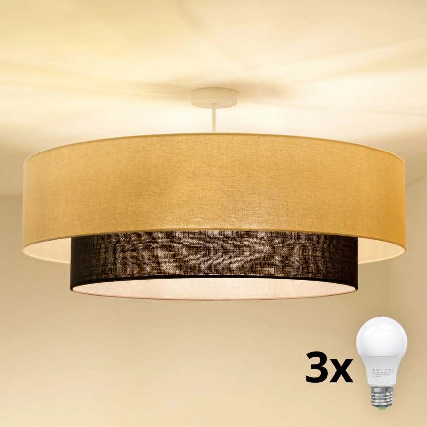 Brilagi - Plafonnier LED BOHO STYLE 3xE27/15W/230V Ø 80 cm crème/marron