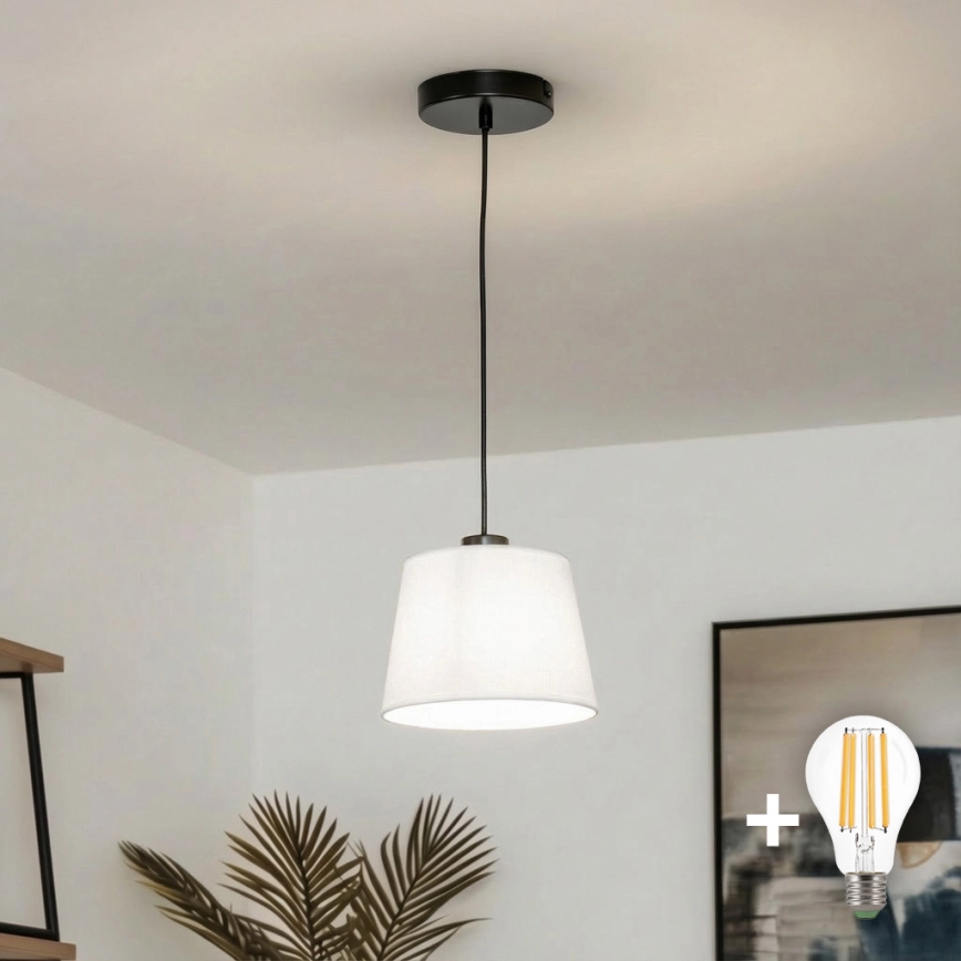 Brilagi - Suspension LED sur câble CERIA 1xE27/40W/230V Ø 20,5 cm blanche caractérise un design agréable et fonctionnel.  Une ampoule à culot E27 convient pour ce luminaire. Ici, vous pouvez acheter d'autres ampoules à des prix avantageux. Vous aurez un ajout intéressant dans votre intérieur.