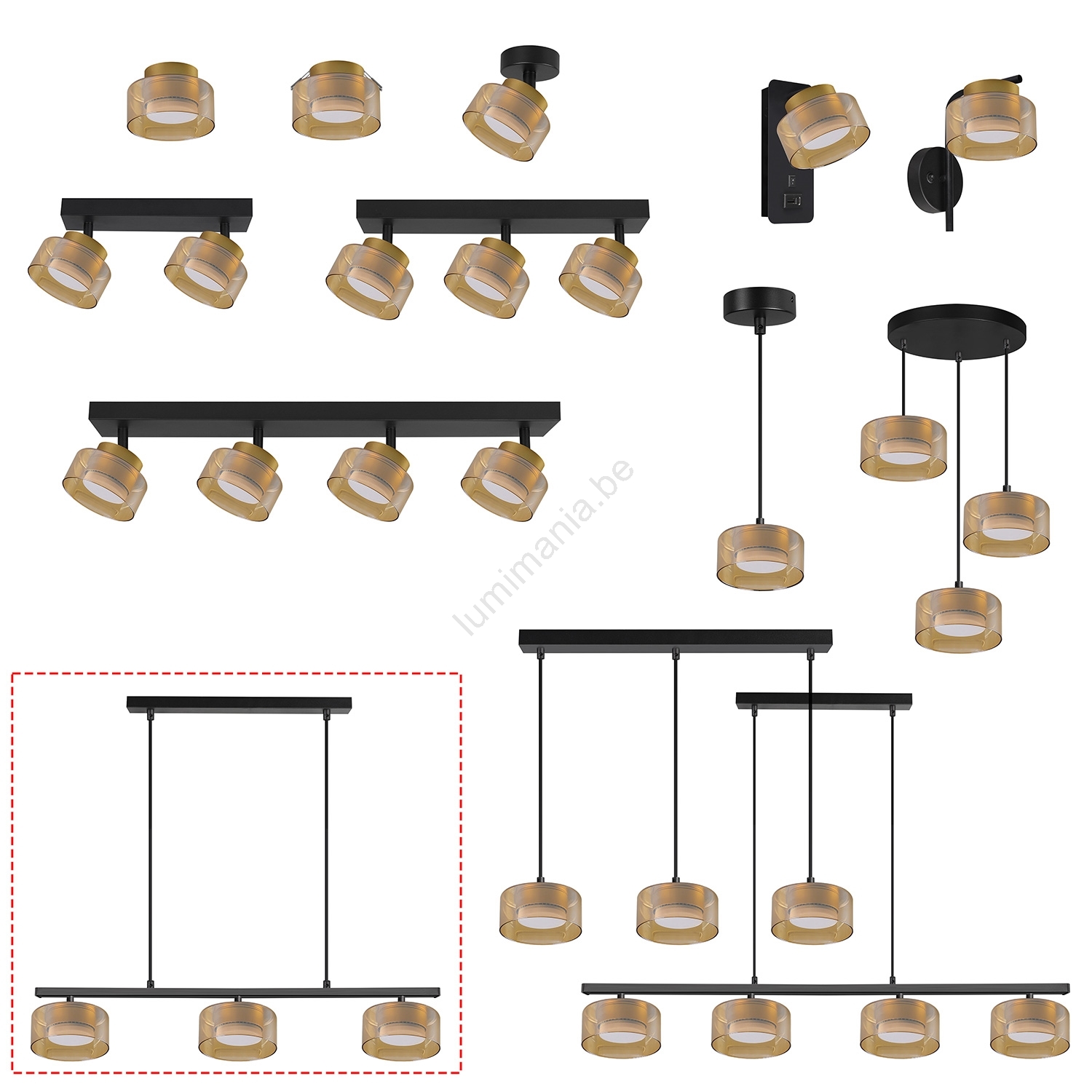 Brilagi - LED Suspension sur câble AURA LUX 3xGX53/30W/230V noir/doré