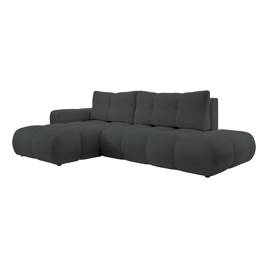 Canapé d'angle convertible rembourré en L ALMADA, version gauche, anthracite, avec coffre de rangement intégré