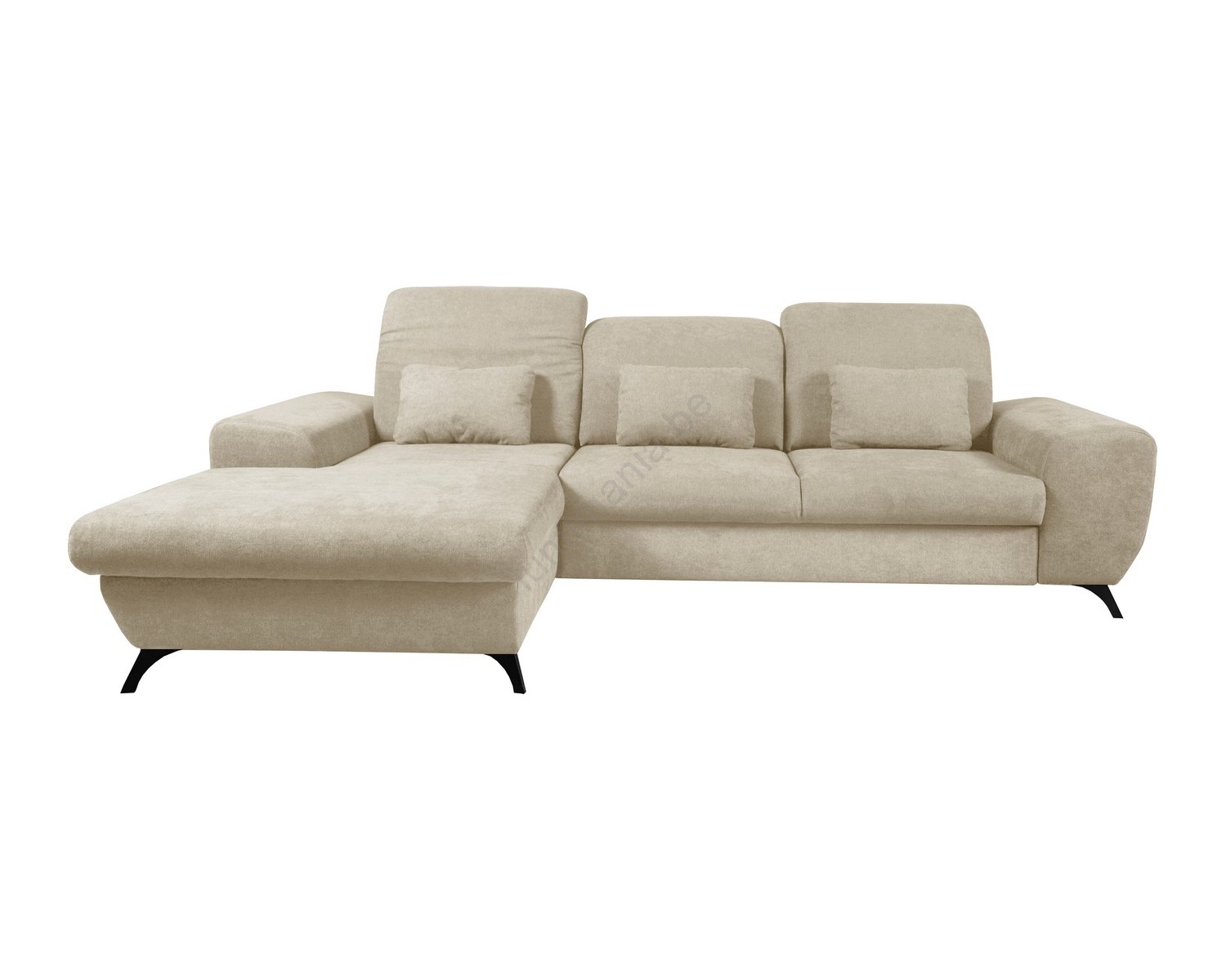 Canapé d'angle convertible rembourré ALTA en L, côté gauche, beige, avec coffre de rangement