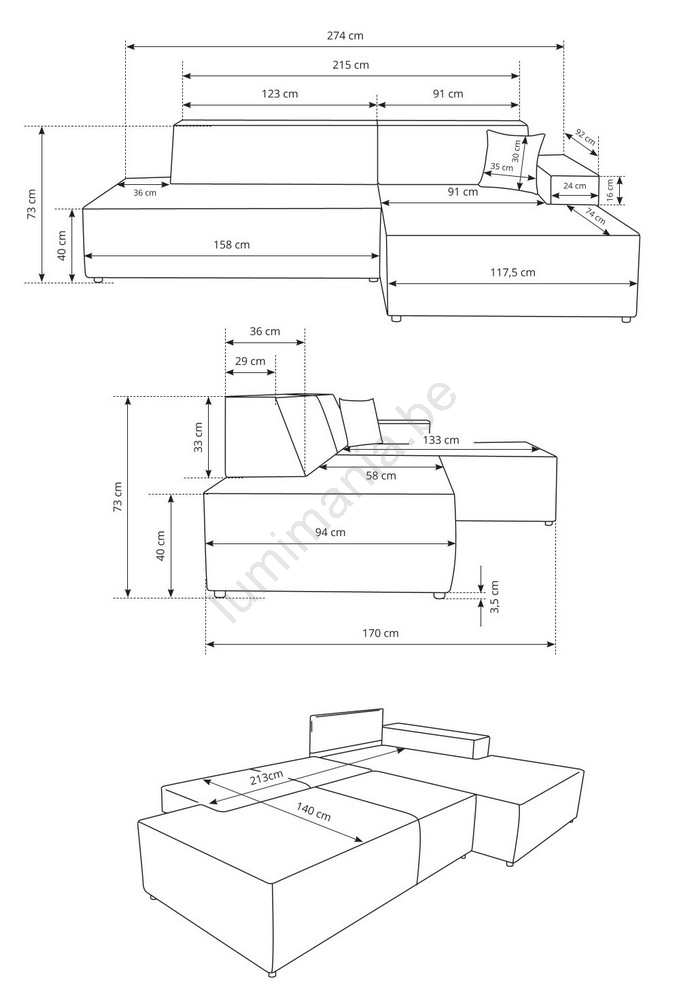 • Les pieds élégants (hauteur 3,5 cm) apportent au canapé un aspect moderne tout en assurant stabilité et longévité.