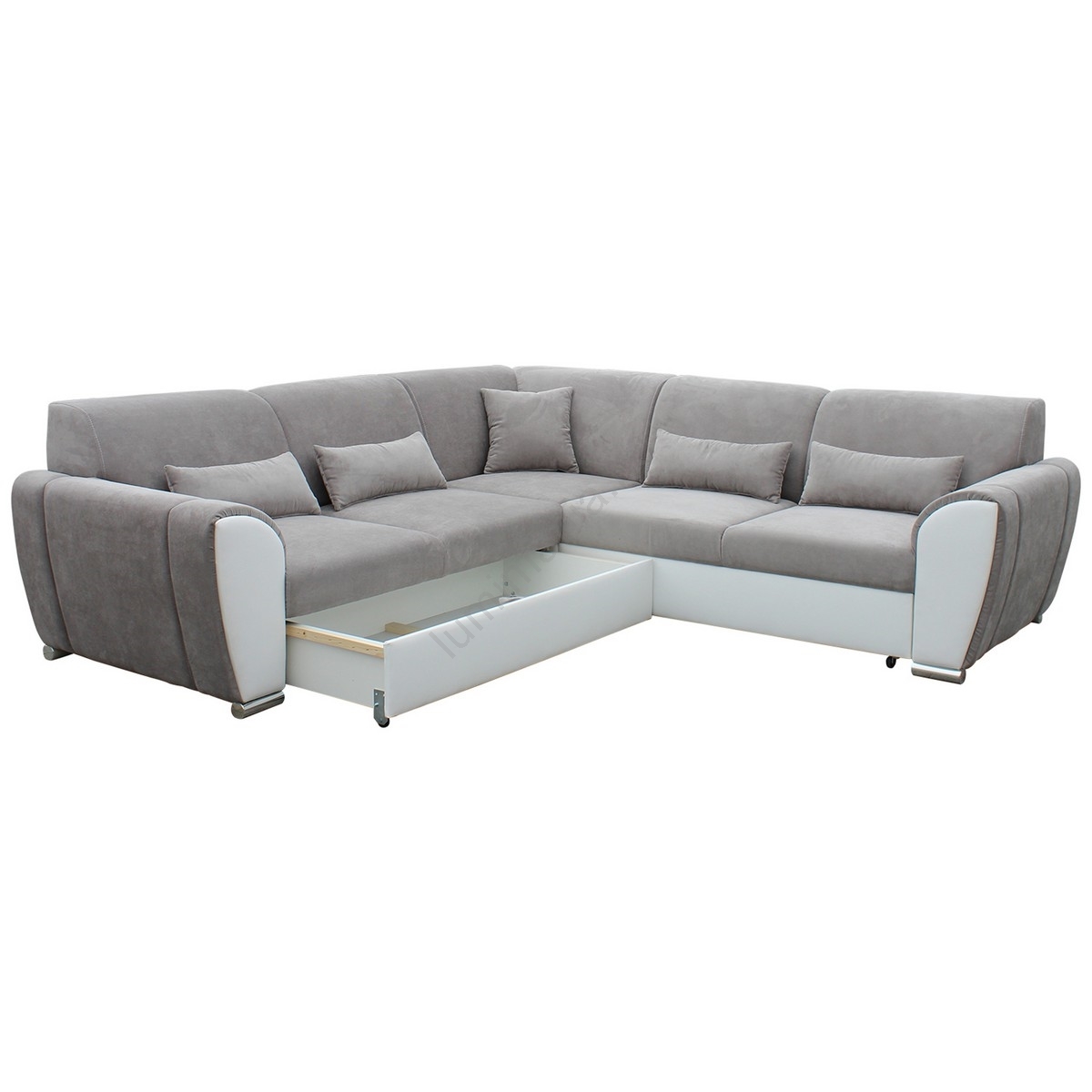 Canapé d'angle convertible en L VISEU, côté gauche, gris/blanc, avec coffre de rangement