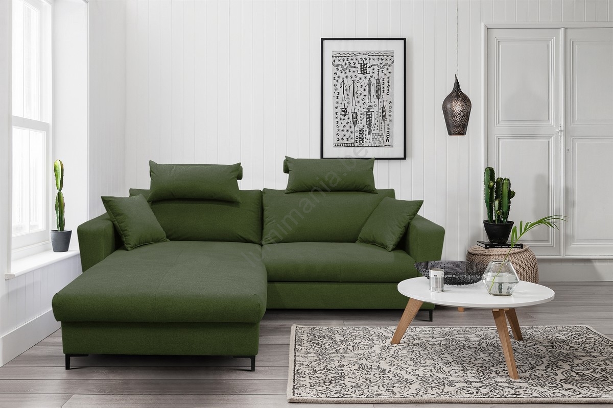 Canapé d'angle convertible avec rangement en L HORTA gauche vert