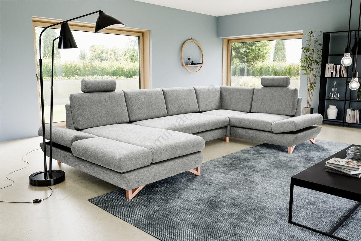 Canapé d'angle convertible en U AVESTA, rembourré, avec coffre de rangement, gris