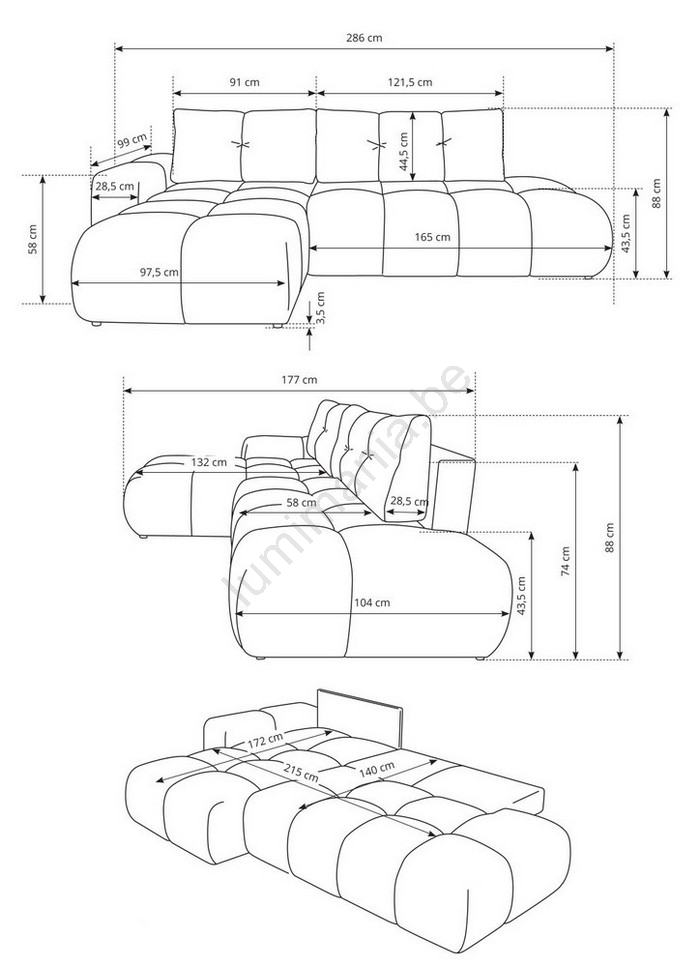 • L'arrière du canapé est revêtu d'un tissu de qualité, ce qui permet de le placer librement dans la pièce.