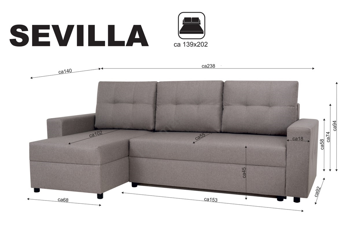 Canapé d'angle universel avec fonction couchage et espace de rangement SEVILLA gris