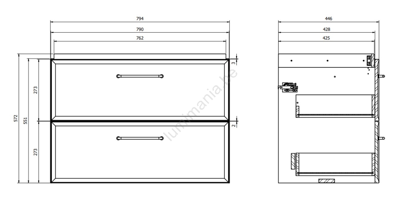 • Le meuble comporte deux tiroirs spacieux à fermeture douce.
