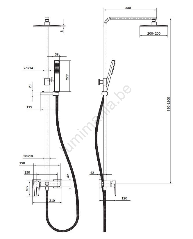 • L’ensemble est équipé d’une douchette à main en plastique ABS.