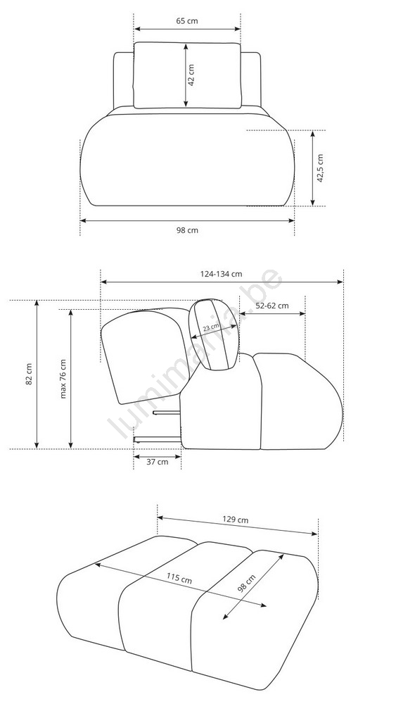• Profondeur d'assise 52-62 cm offre suffisamment d'espace pour une position assise détendue et ergonomique.