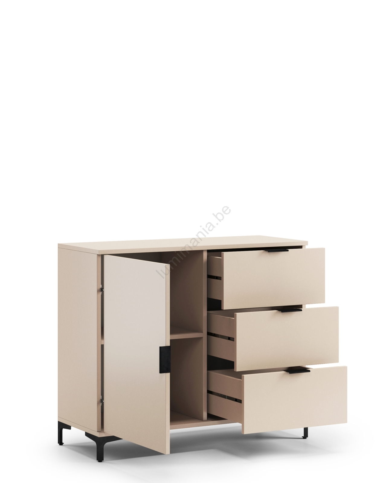 • Le meuble est conçu dans un style loft et se distingue par ses pieds et poignées métalliques, qui lui apportent une touche industrielle supplémentaire.