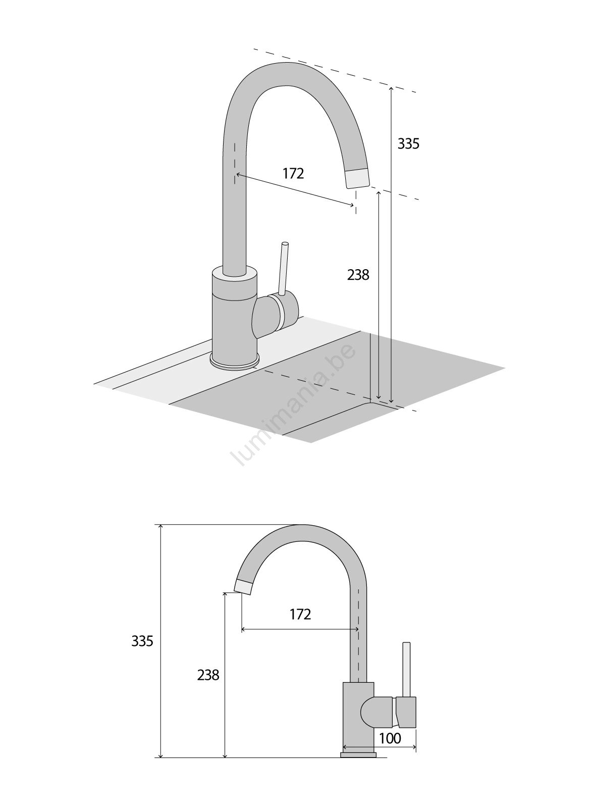 • Hauteur totale : 335 mm.