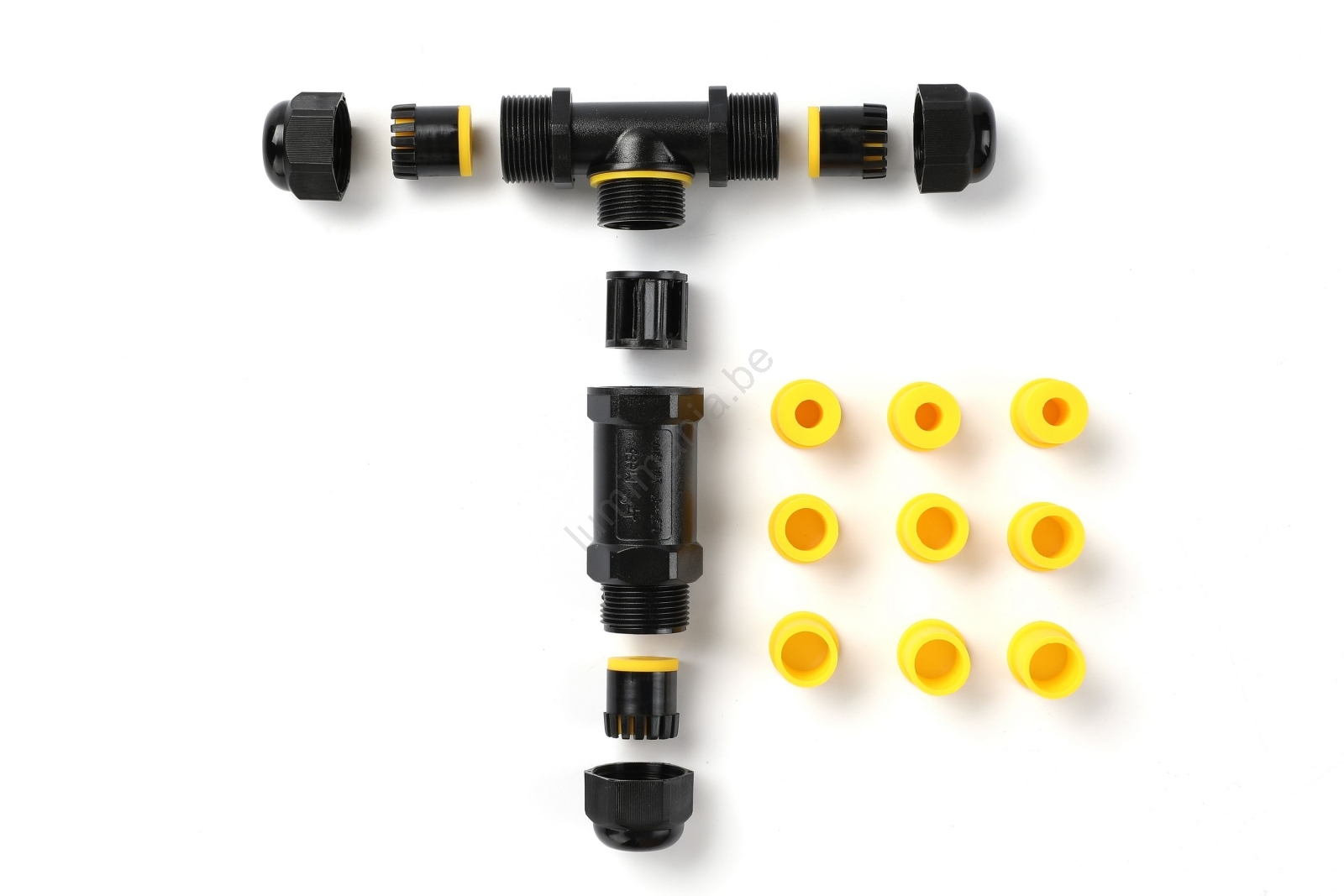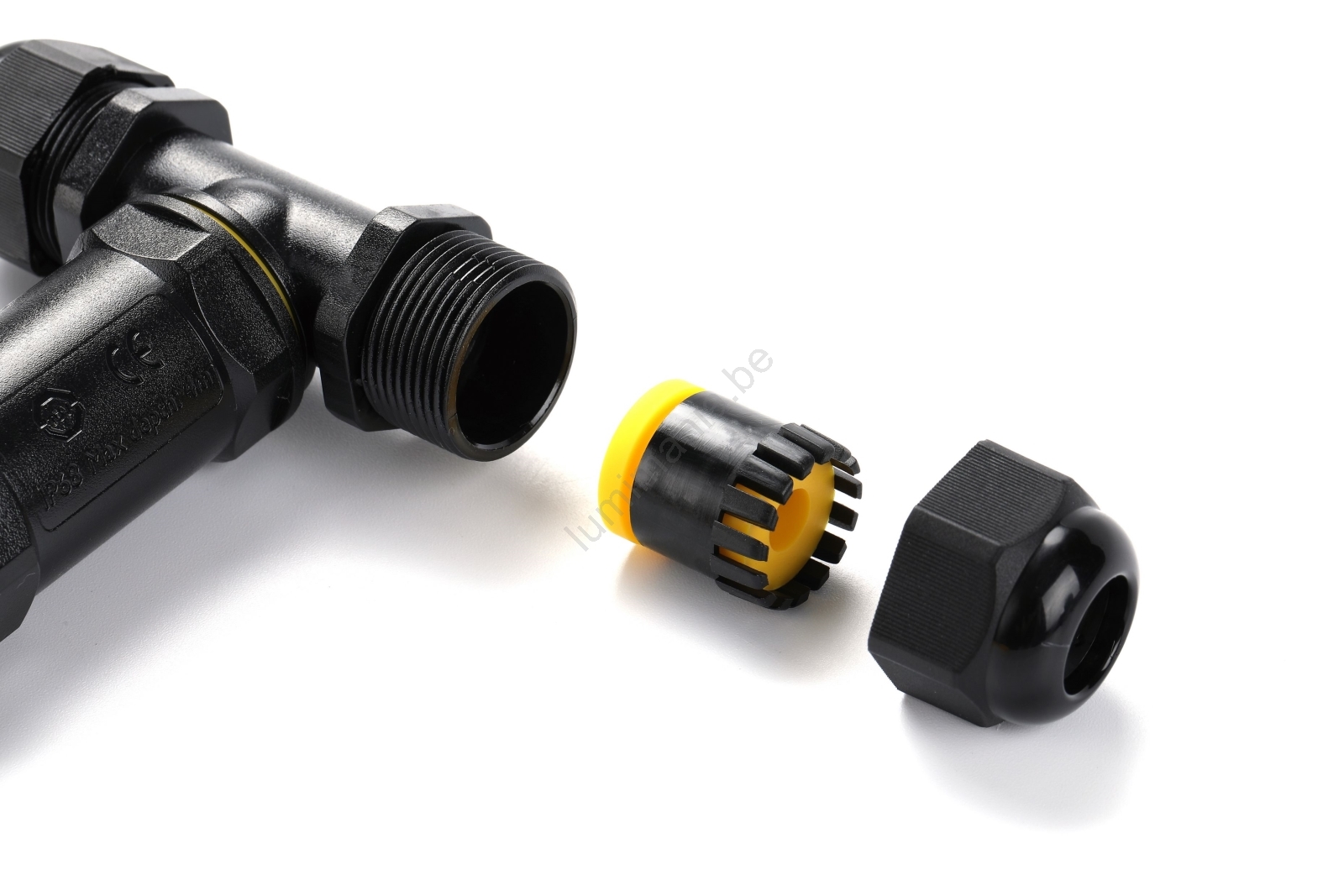 • Le connecteur en T est utilisé pour une connexion électrique sécurisée et fiable des câbles.