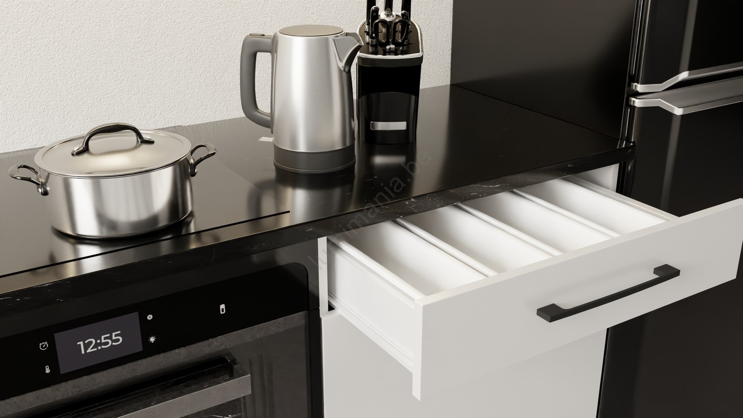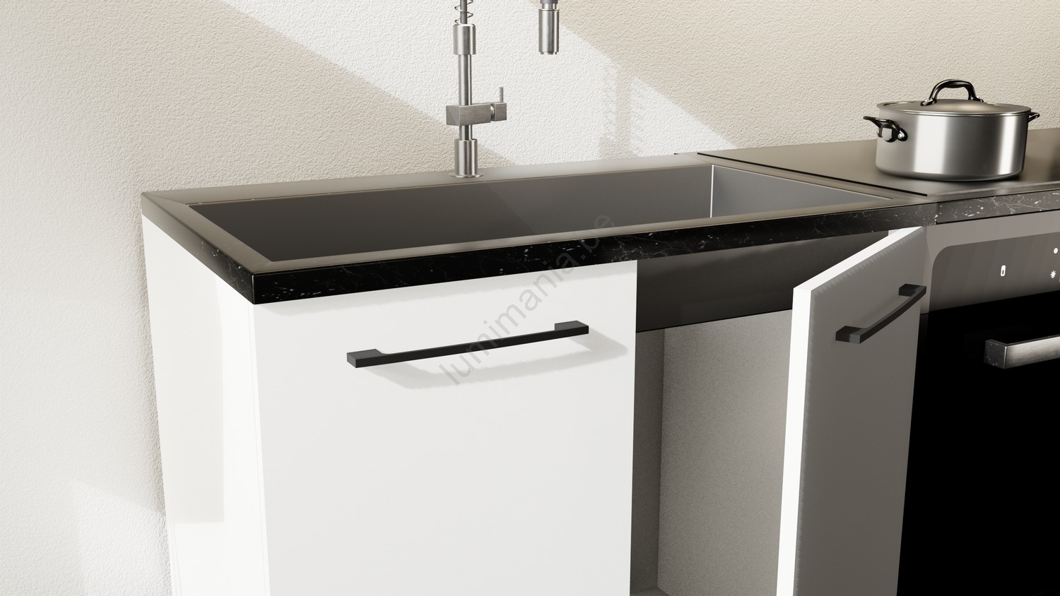 • L'agencement des placards est modulaire, vous pouvez personnaliser la cuisine selon vos préférences.
