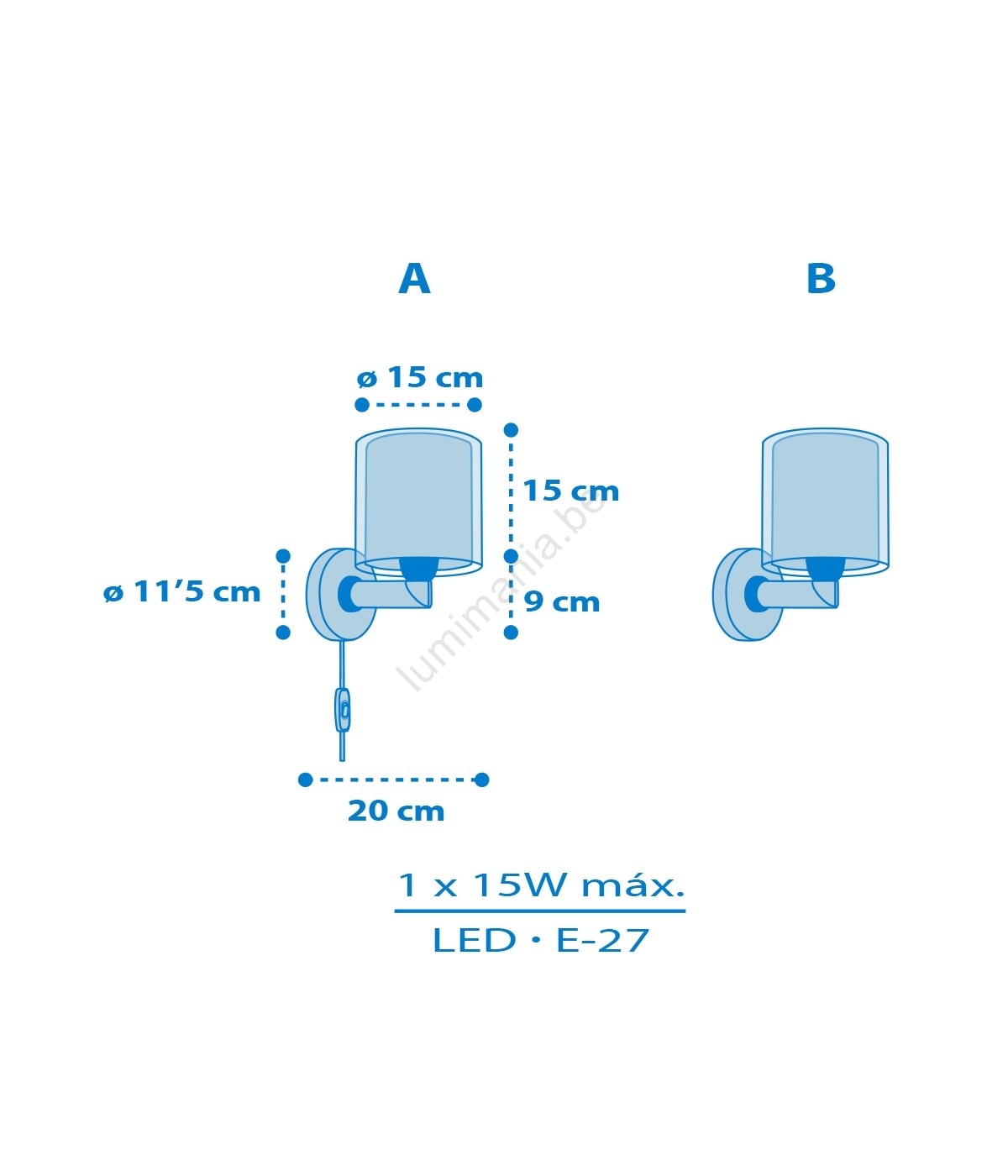 • Dalber 41579T - Lampe murale pour enfant BABY TEDDY 1xE27/15W/230V bleue
